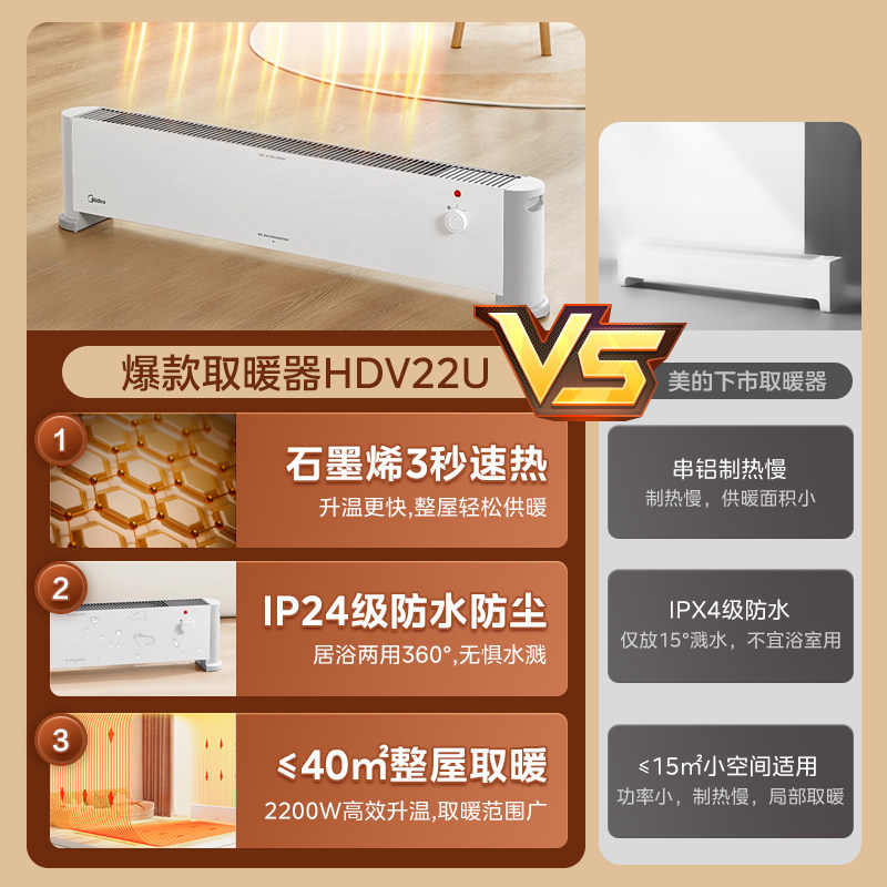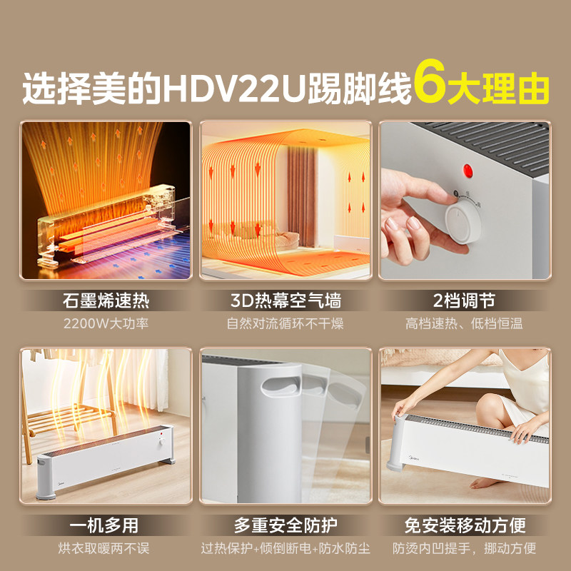 美的石墨烯踢脚线取暖器家用大面积热风电暖器冬季卧室用暖风机