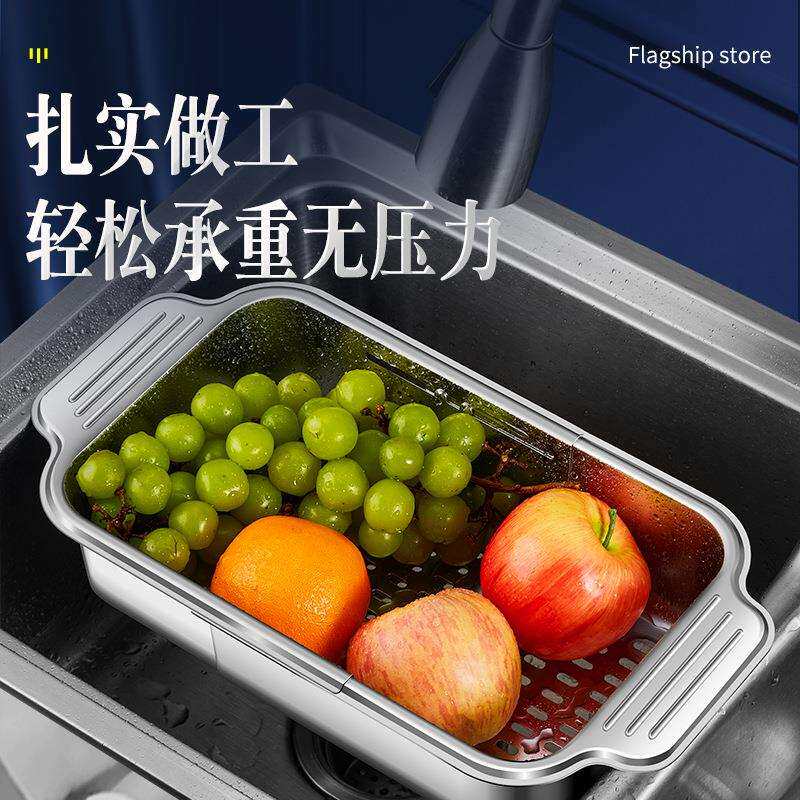 不锈钢多功能可伸缩沥水篮厨房家用洗菜篮水槽置物架蔬菜收纳框