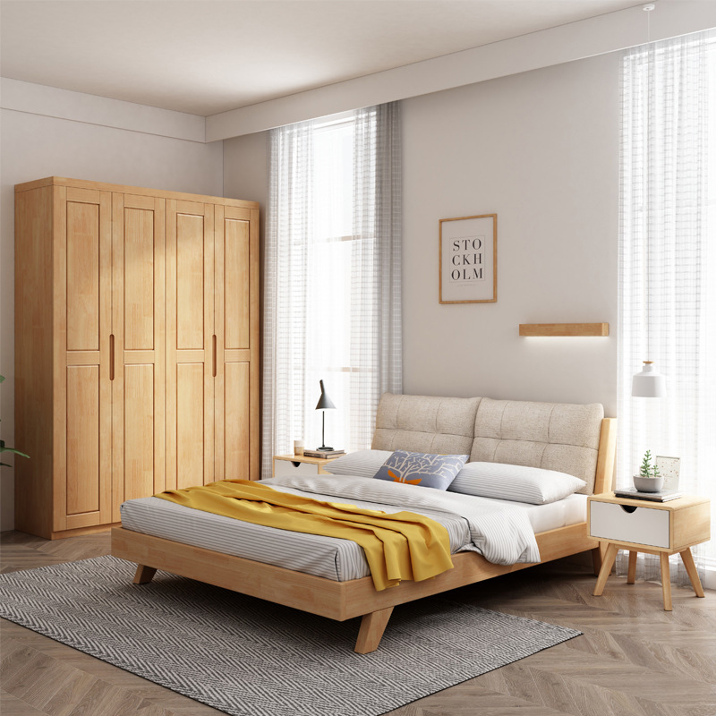 实木床现代简约风格1.8米1.5米双人大床 主卧经济型ins网红北欧床