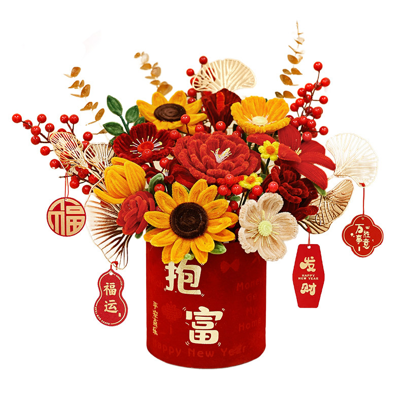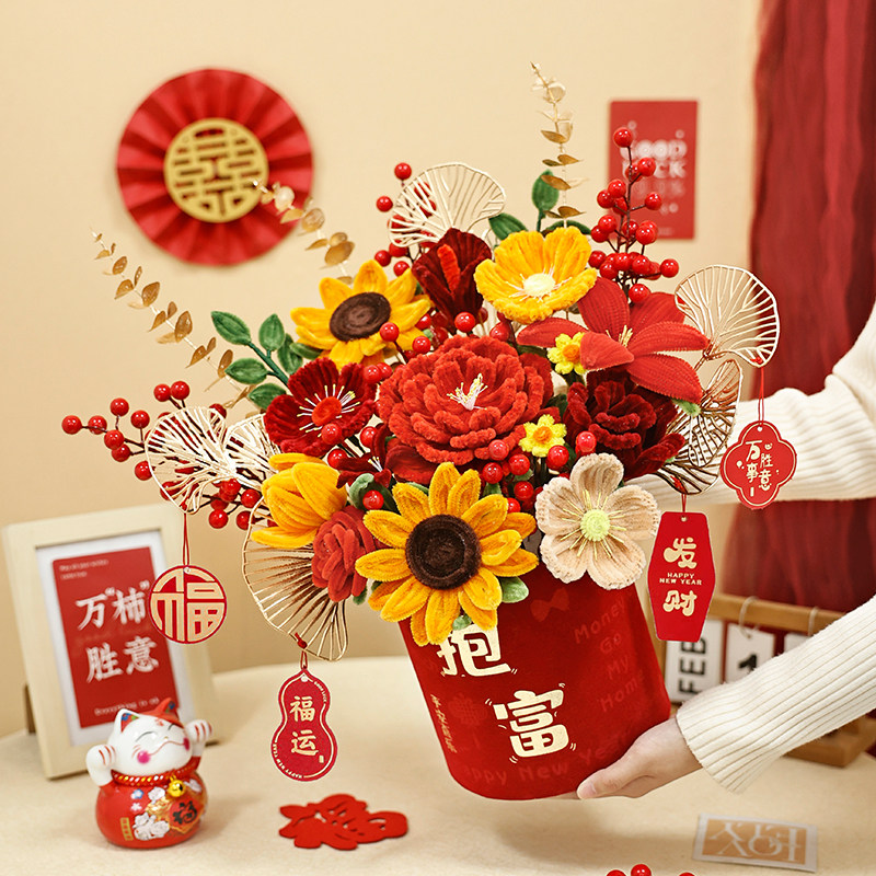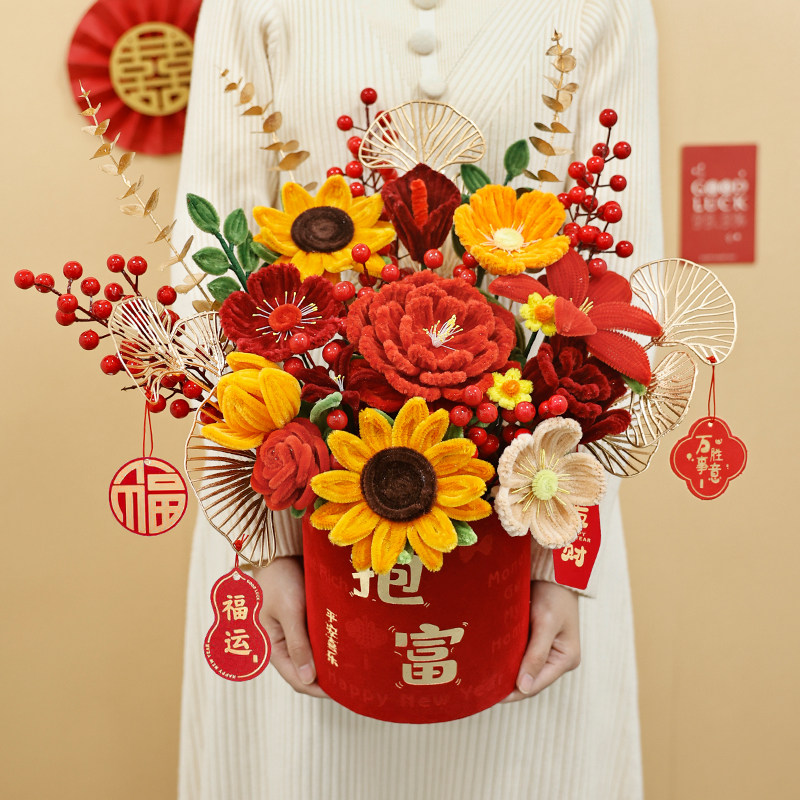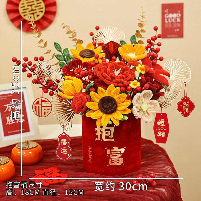 乔迁新居入宅暖居装饰摆件礼物自制扭扭棒diy向日葵花束抱抱福桶