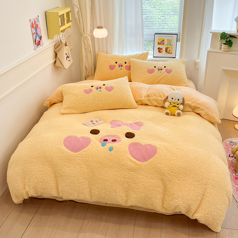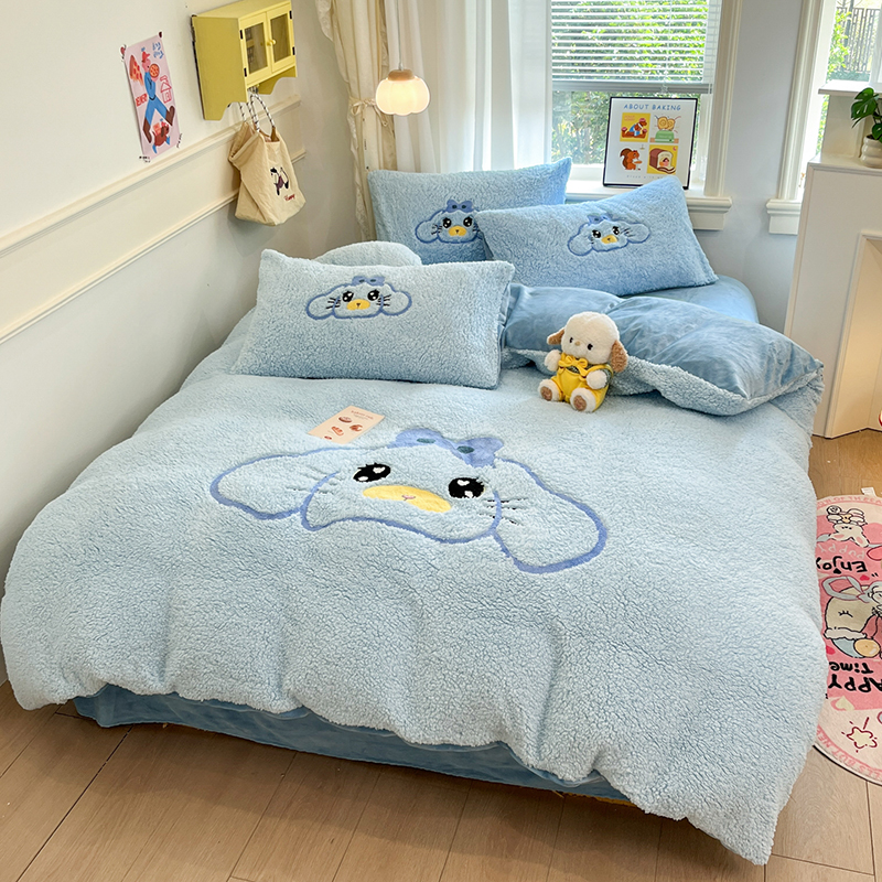 冬季牛奶绒四件套珊瑚绒床上用品床单法兰绒双面加绒加厚卡通被套