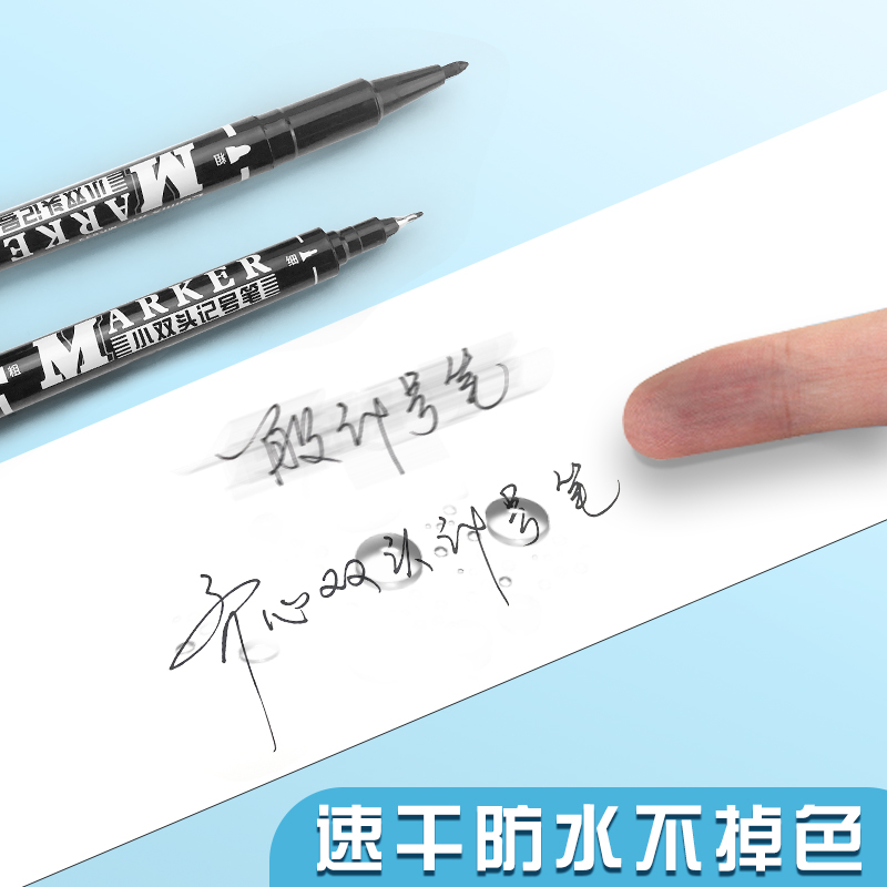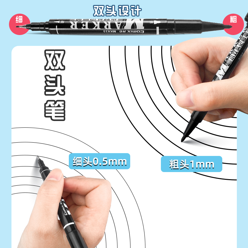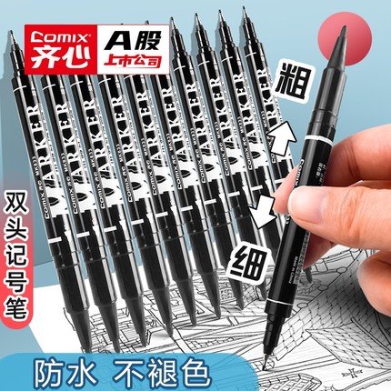 齐心双头记号笔双头勾线笔美术专用黑色大头笔油性记号笔细头马克笔勾线笔儿童画画描边笔防水不掉色速干双头