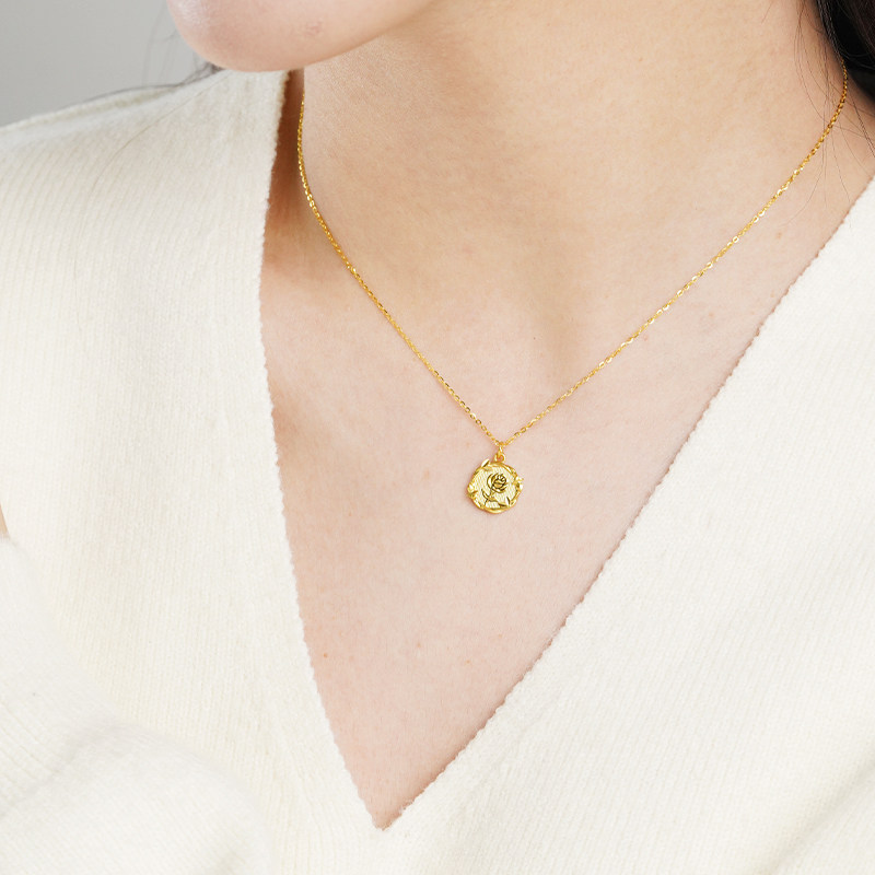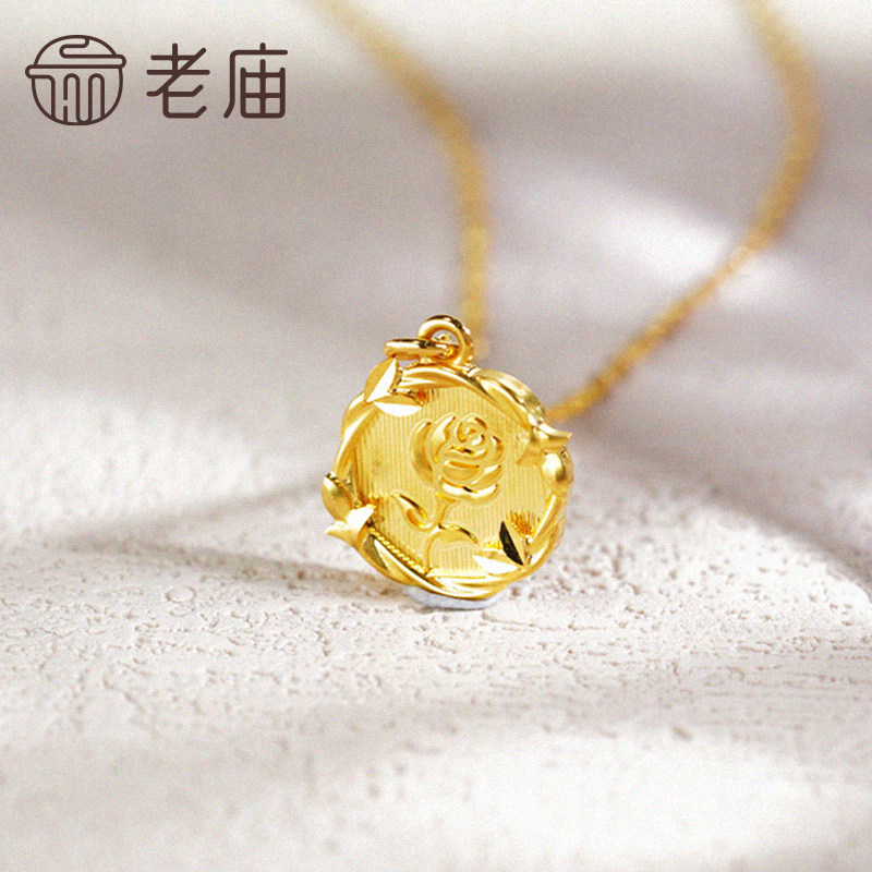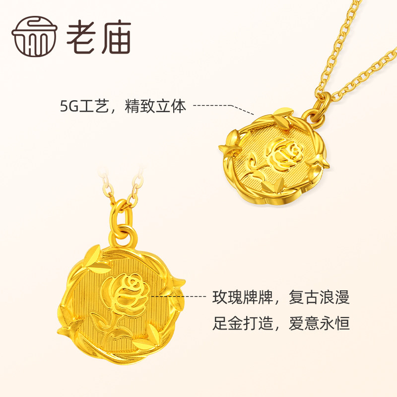 老庙黄金足金玫瑰项链5G