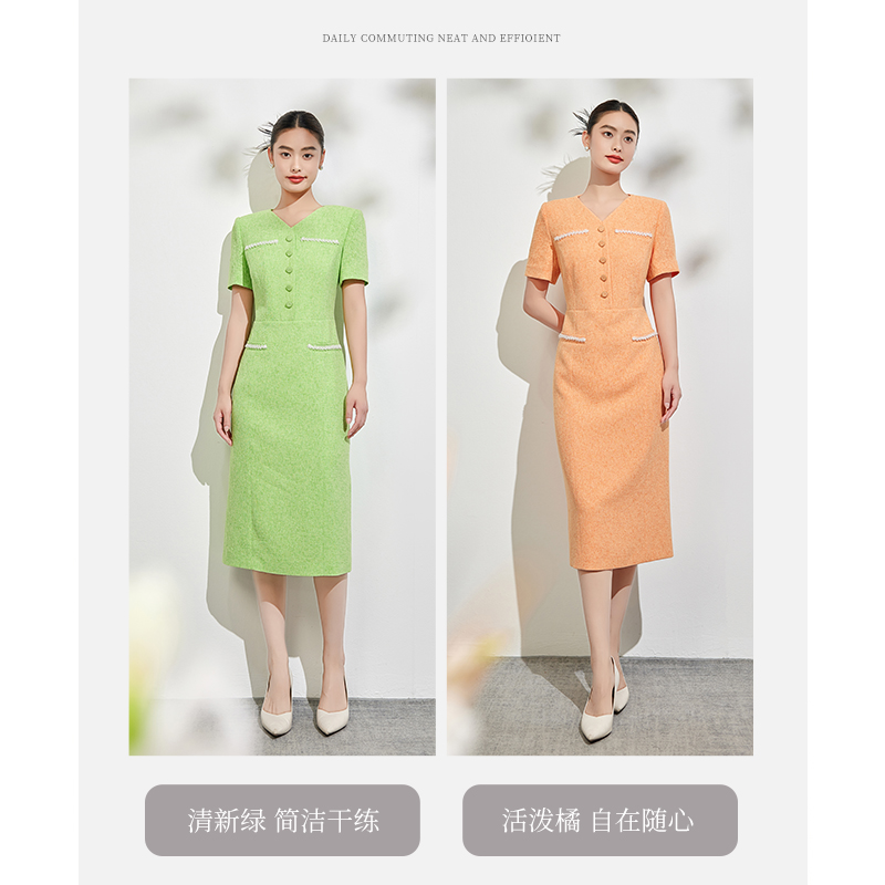 黛玛诗时尚通勤v领小香风连衣裙女025夏季新款多巴胺气质醋酸长裙