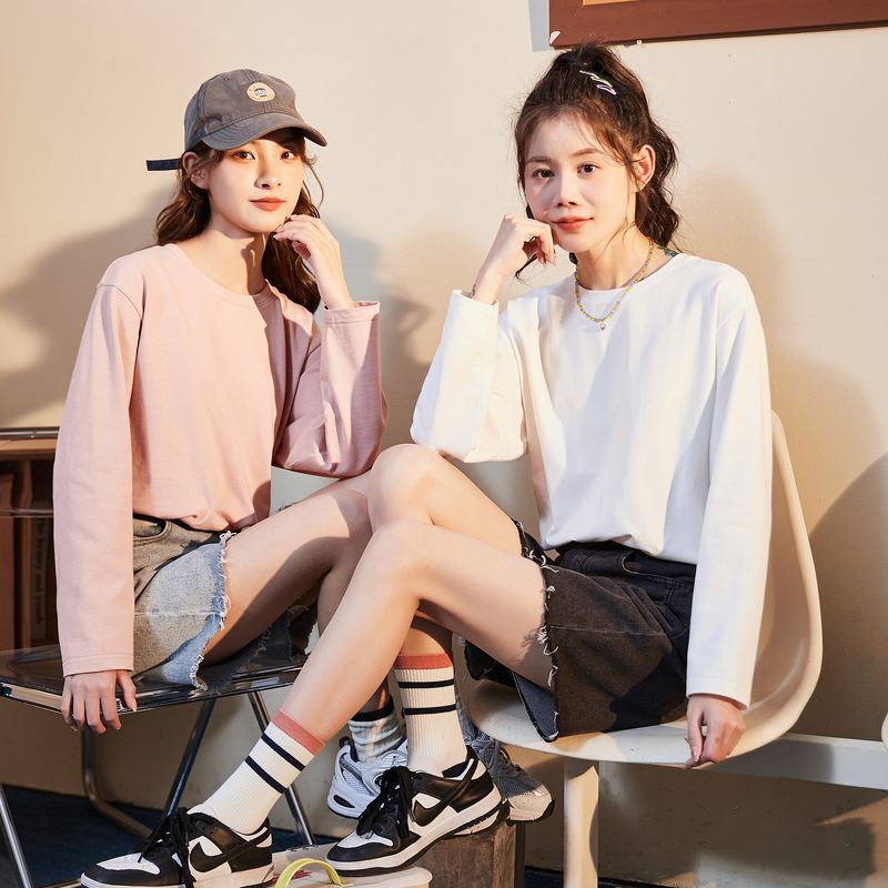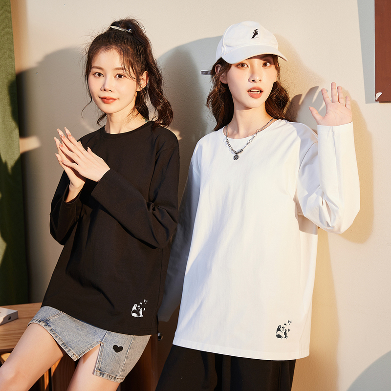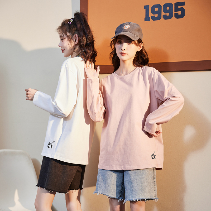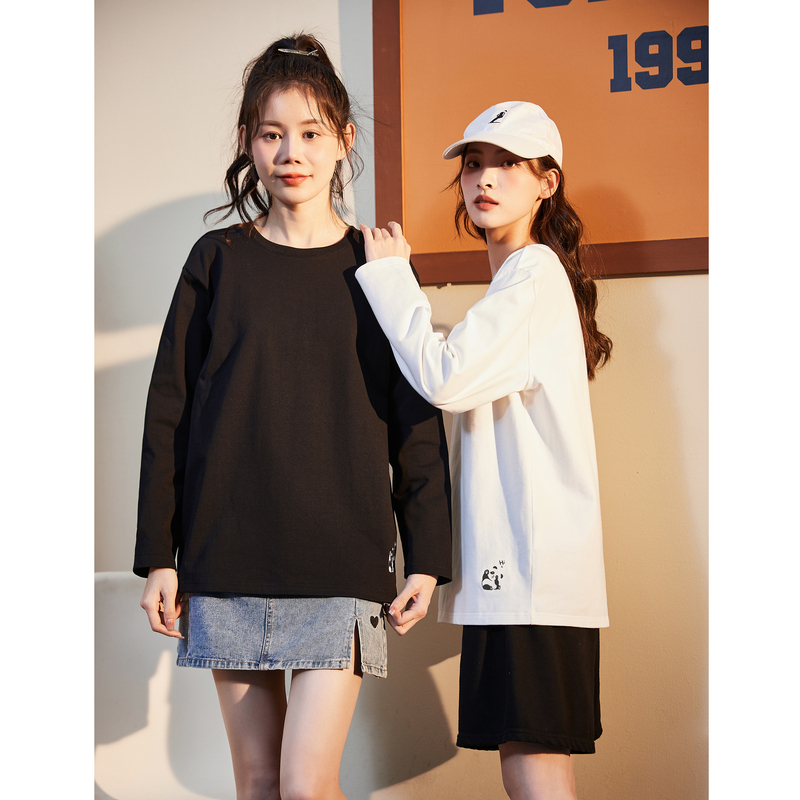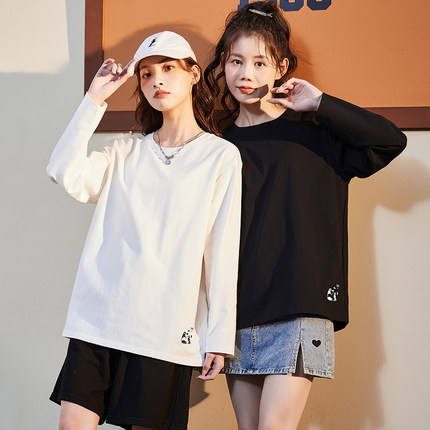 唐狮长袖T恤女2025秋季新款简约宽松圆领百搭显瘦休闲打底衫上衣