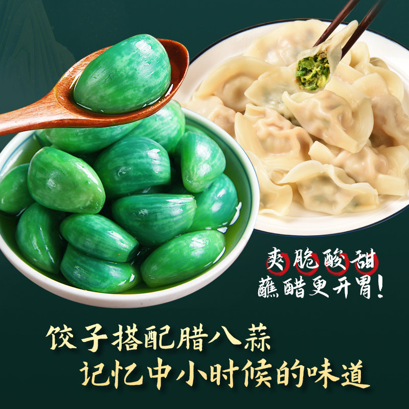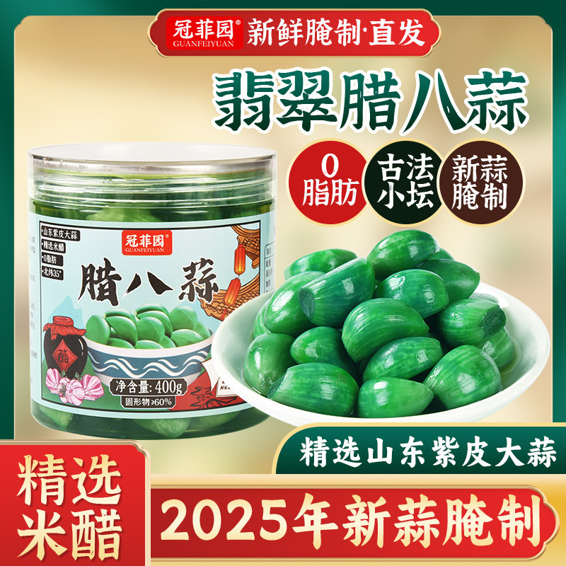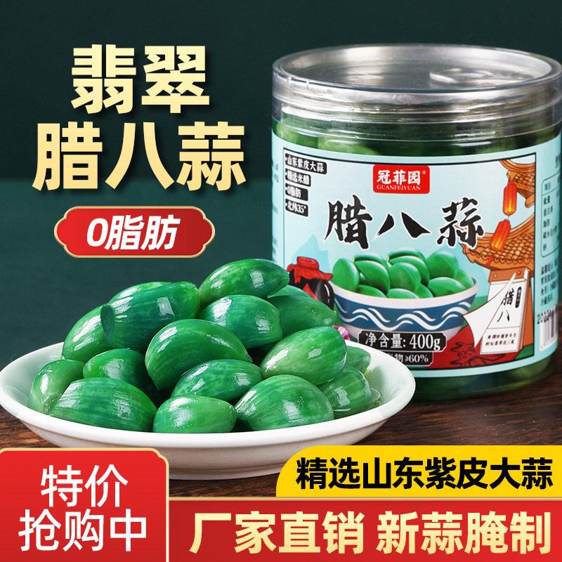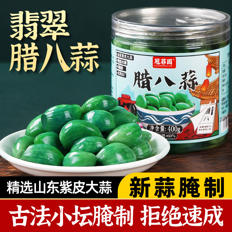 冠菲园翡翠腊八蒜正宗山东金乡大蒜新鲜腌制绿蒜糖醋蒜泡菜下饭菜