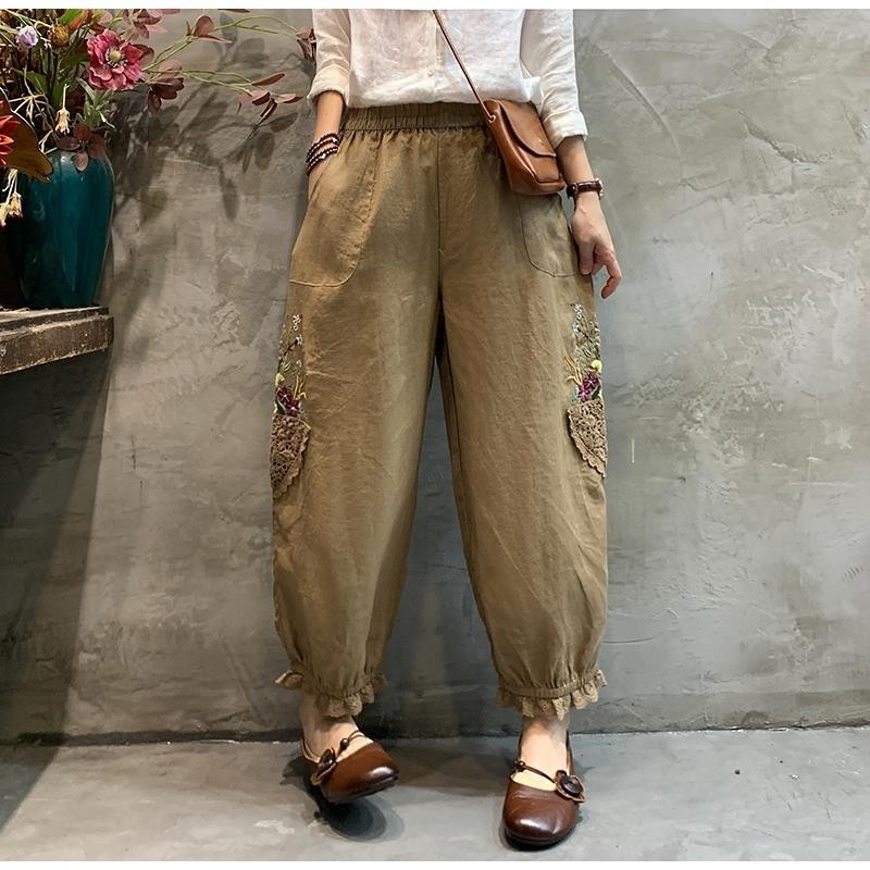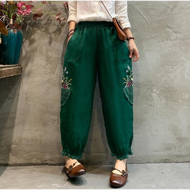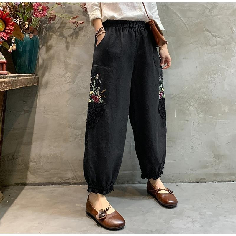 刺绣宽松百搭显瘦棉麻灯笼九分裤