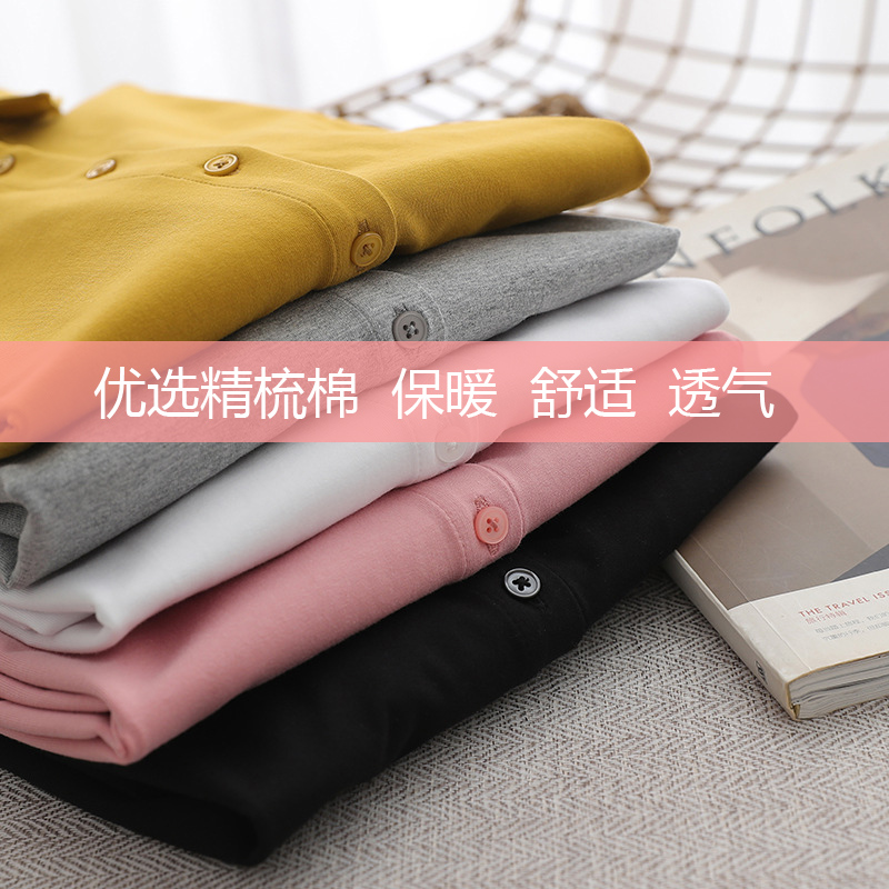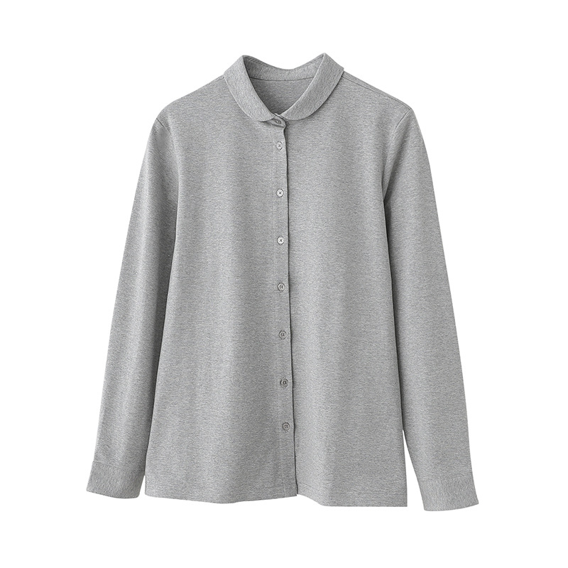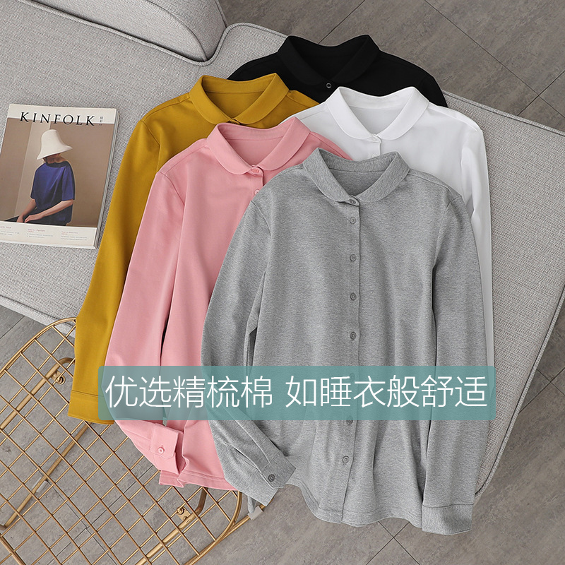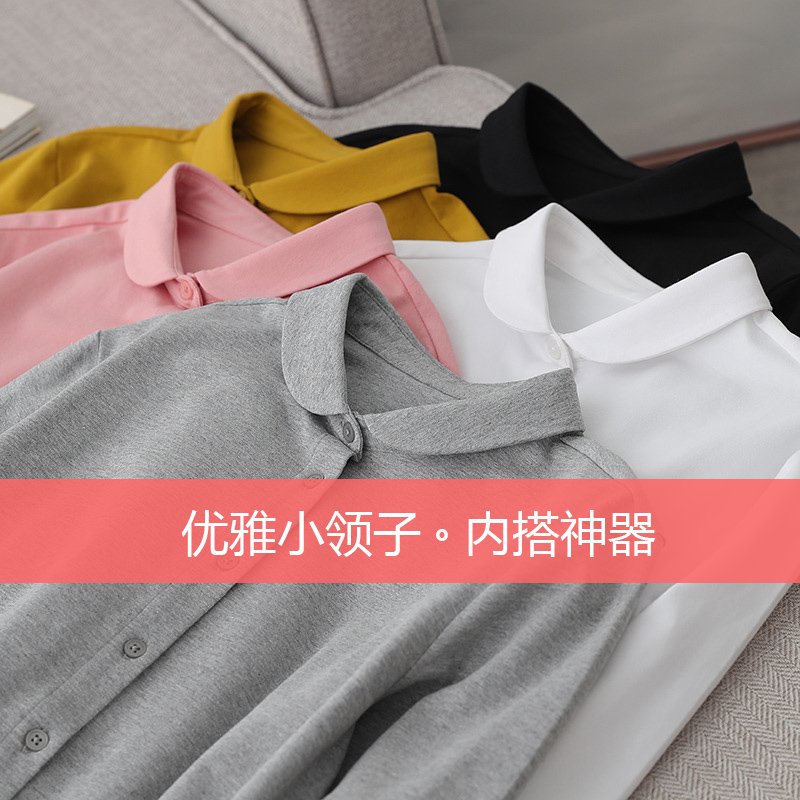 精梳纯棉日系小圆领衬衫女弹力针织棉长袖内搭洋气质娃娃领打底衫