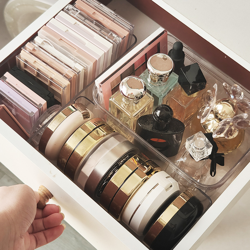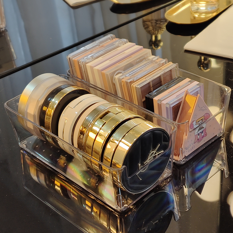 粉饼眼影桌面收纳盒化妆品气垫口红整理盒子塑料透明抽屉分隔盒