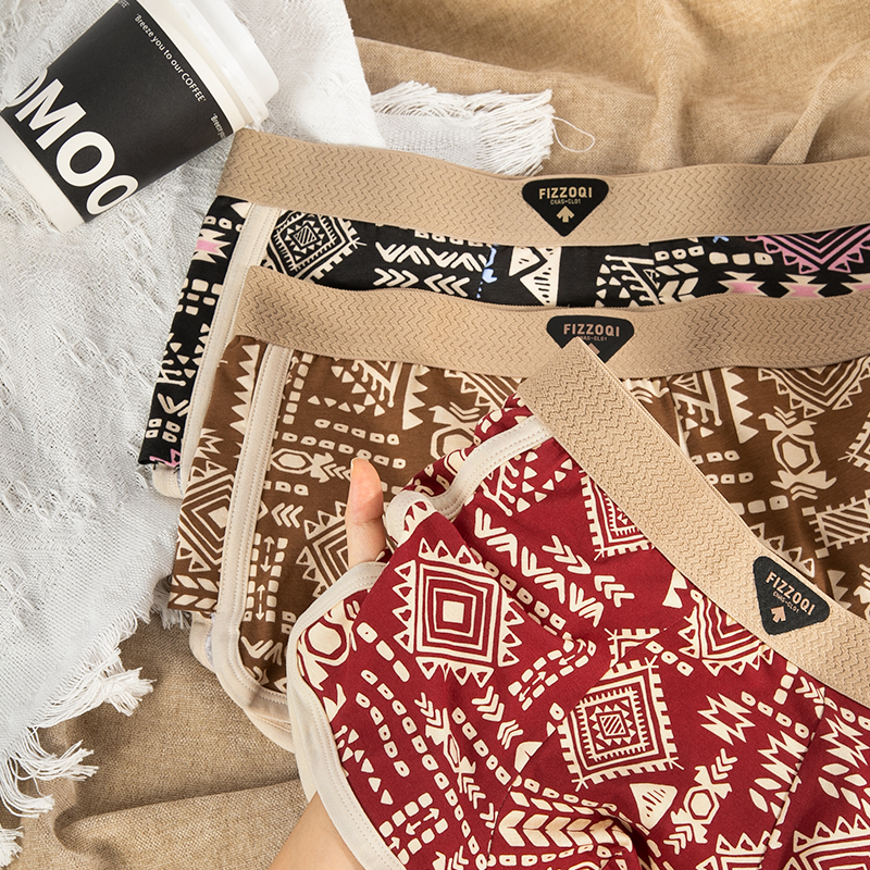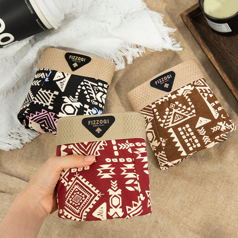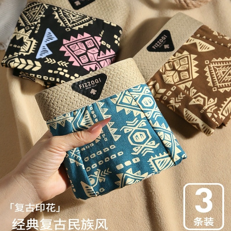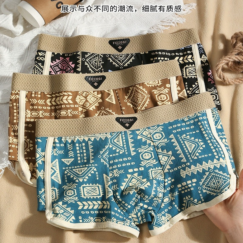 复古民族风男士内裤棉质阿玛雅平角裤印花透气四角裤潮流短裤底裤