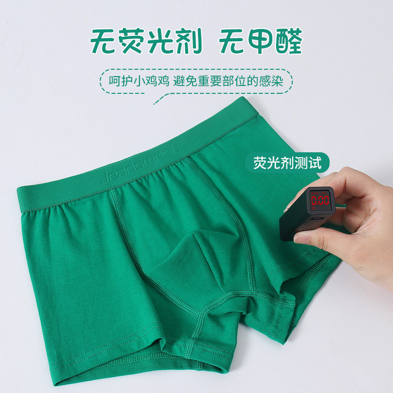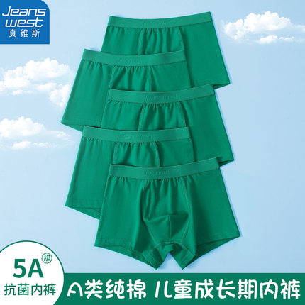 真维斯男童纯棉绿色内裤儿童抑菌平角短裤男生中大童男孩四角裤头