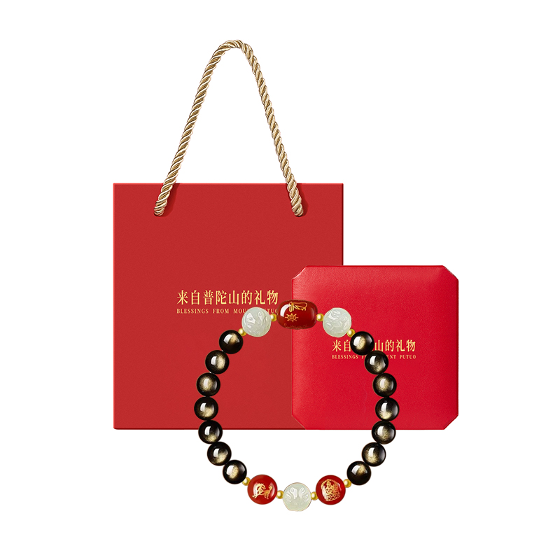 遇见普陀山天然黑曜石手串男女2026年新款生肖三合六合本命年手链