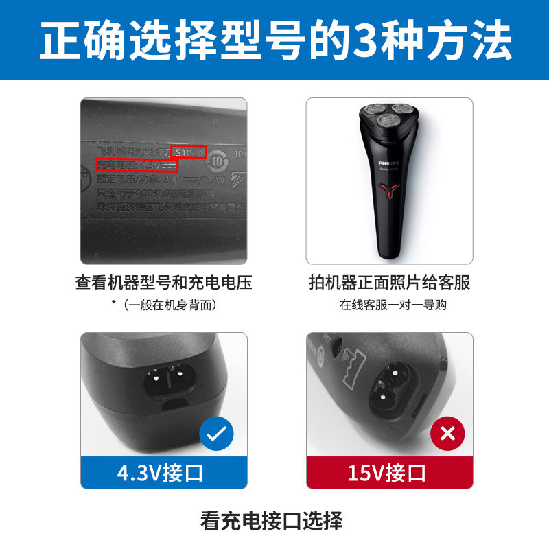 飞利浦剃须刀充电器线原装正品A00390适s1101s1103s1203s1108配件
