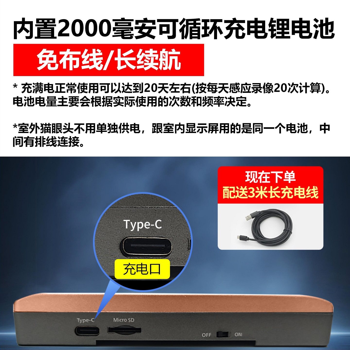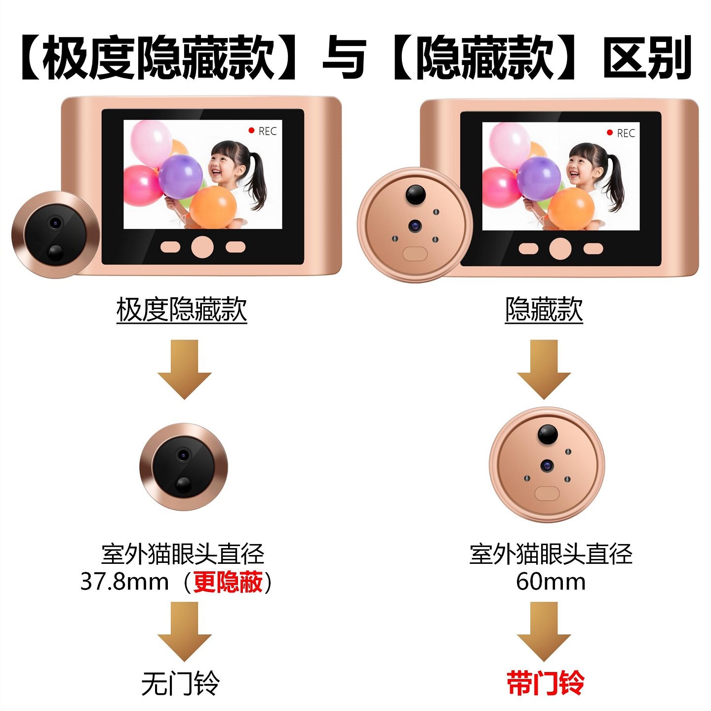 智能猫眼摄像头监控录像可视门铃带显示屏高清门镜无线免打孔家用