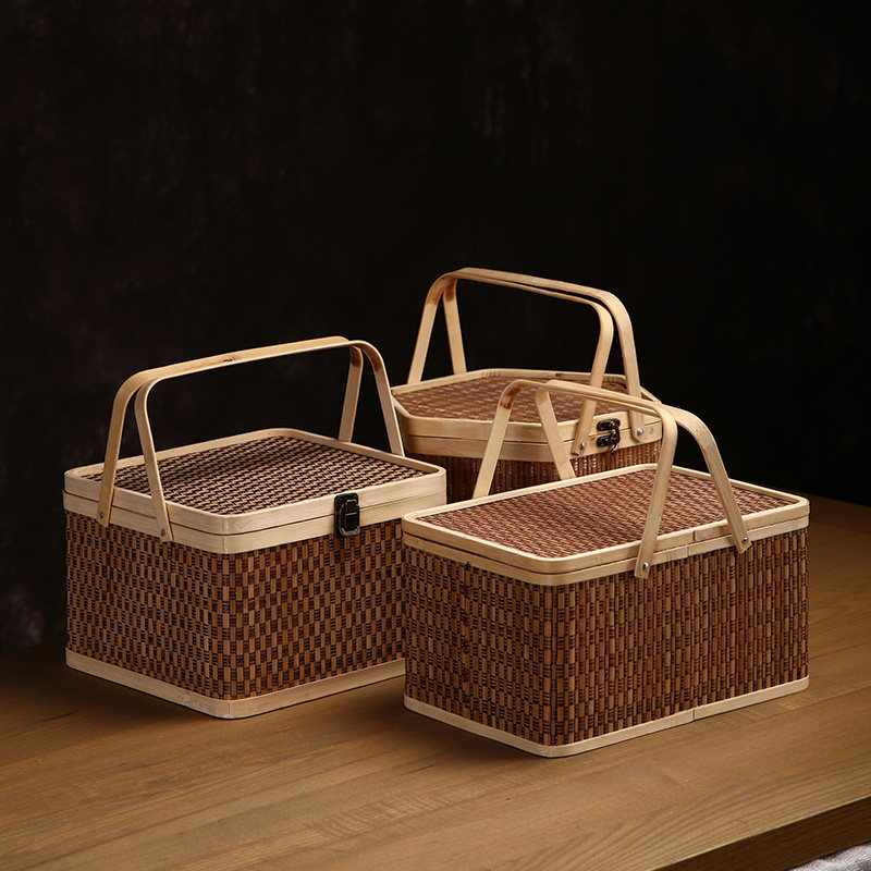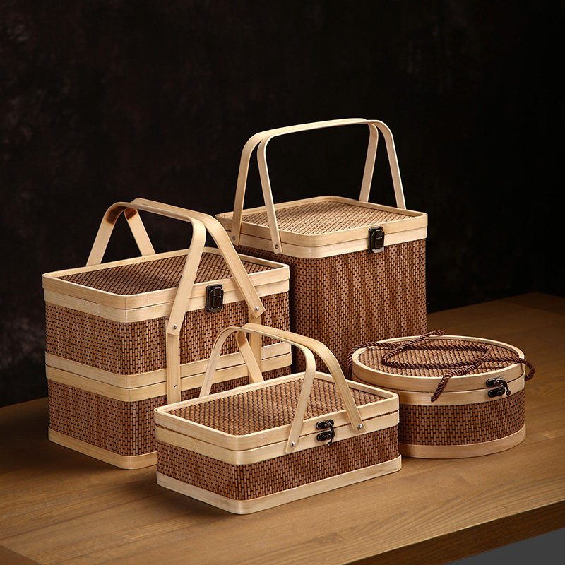 纯手工竹编提篮月饼篮上圆下方粽子篮水果篮年货茶叶竹制礼盒包装
