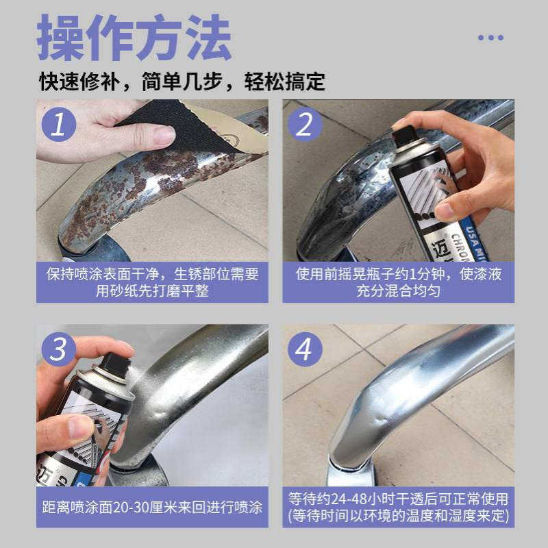 迈克Michel镀铬自喷漆不锈钢修复翻新漆银色电镀金属防锈漆自喷漆