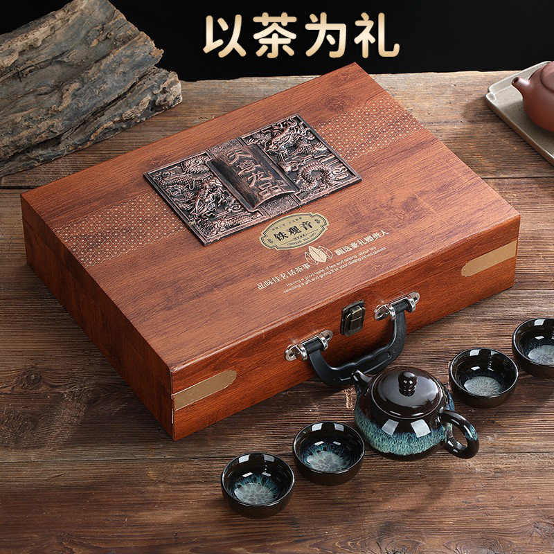 送礼长辈安溪铁观音高档浓香型乌龙兰花香茶叶茶具礼盒装定制252g