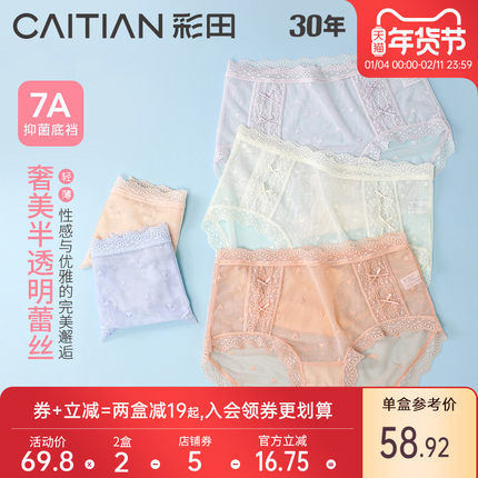 彩田25年新款内裤超薄镂空性感蕾丝提花聚乳酸抗菌底裆女士三角裤