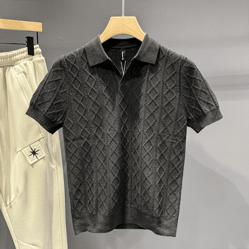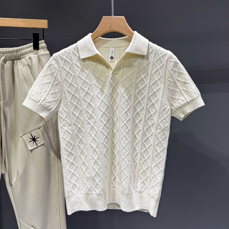 高级感提花短袖针织衫男士修身
