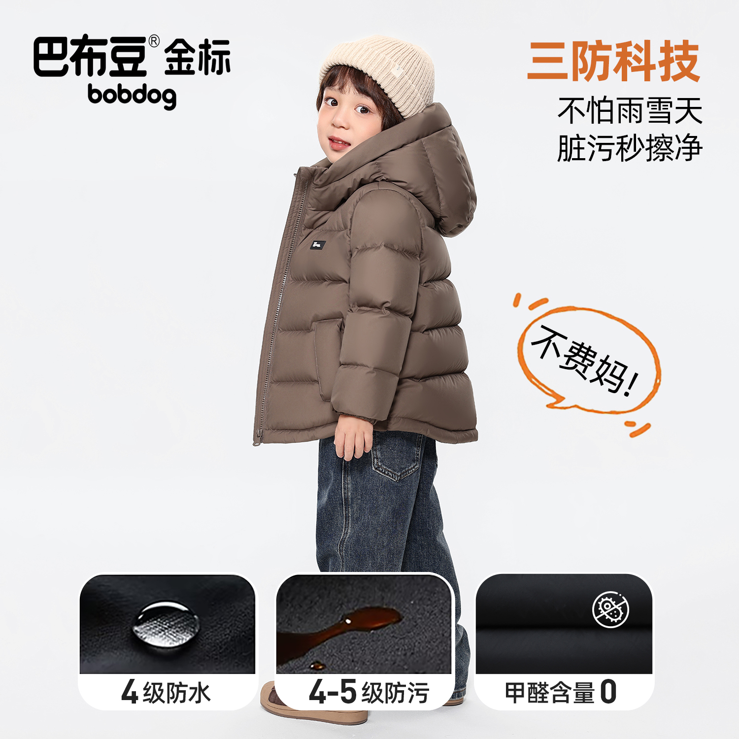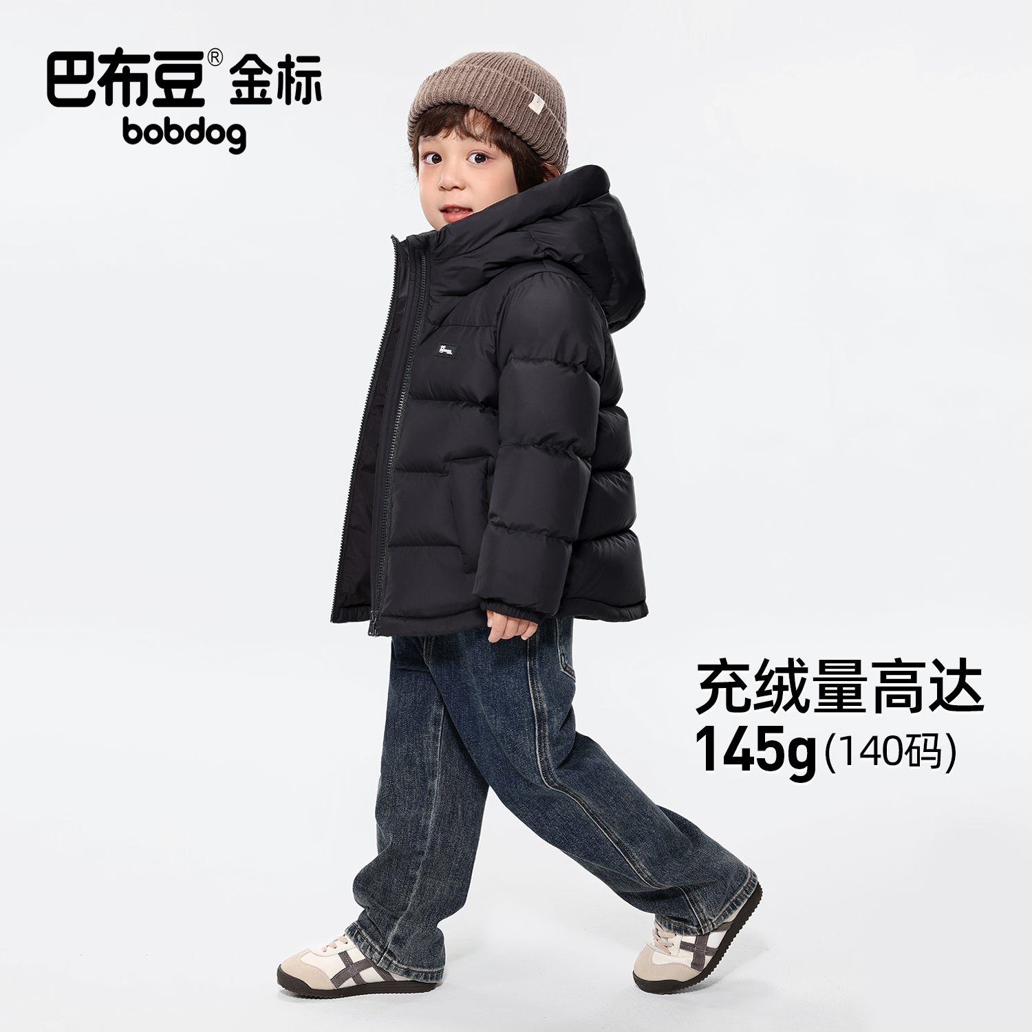 巴布豆金标95绒短款儿童羽绒服男童女童2025新款冬装防风保暖外套