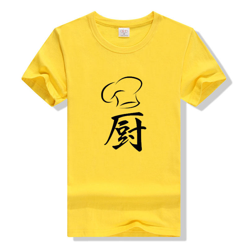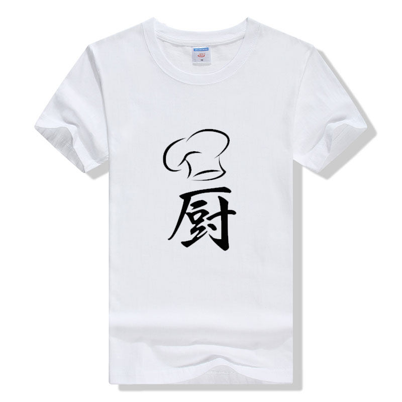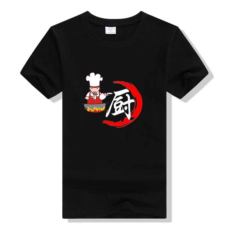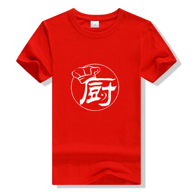 厨师工作服短袖男T恤女定制酒店饭店厨房工装薄纯棉圆领印字logo
