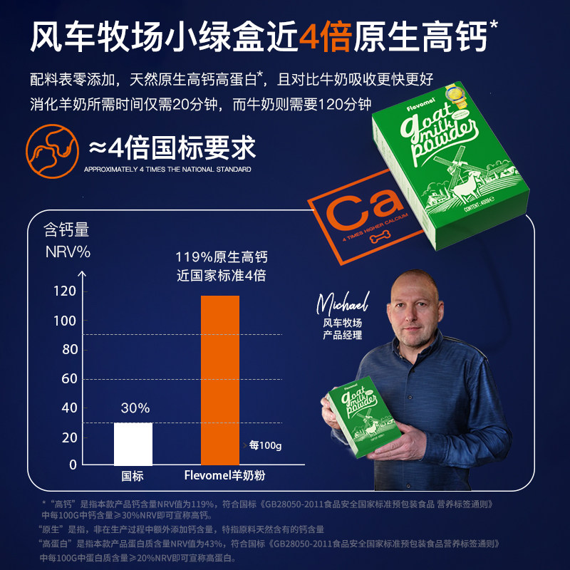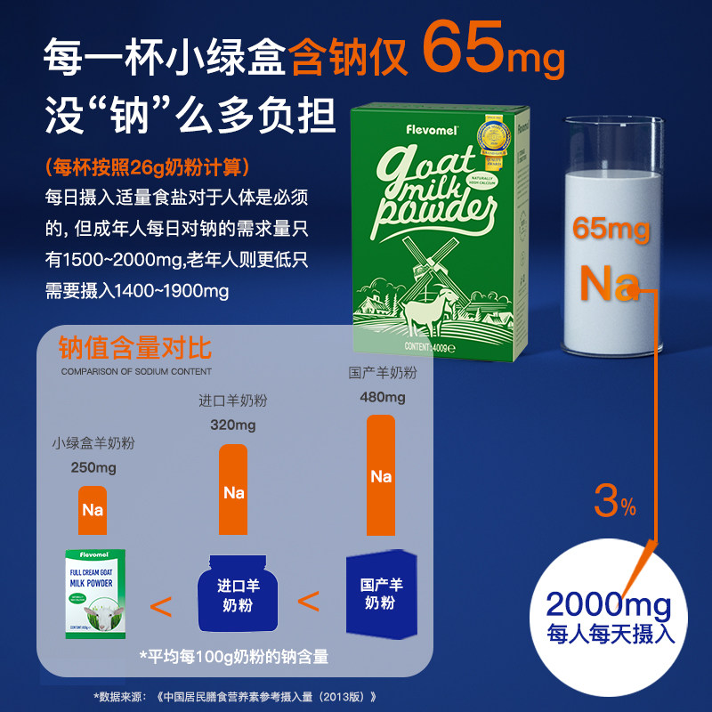 【进口】风车牧场荷兰高钙小绿盒纯羊奶粉400g×2盒老年成人儿童