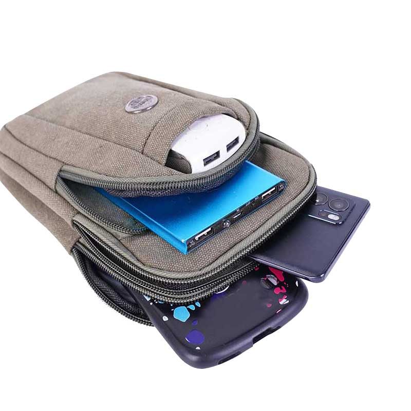 适用于放7.2寸华为大屏单肩斜挎手机包竖三层拉链帆布腰包穿皮带