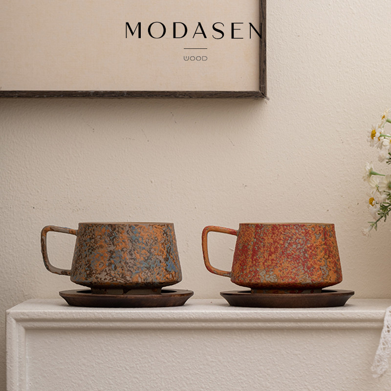 MODASEN丨点漆 AZOI北欧窑变陶瓷咖啡杯碟复古下午茶杯拿铁拉花杯