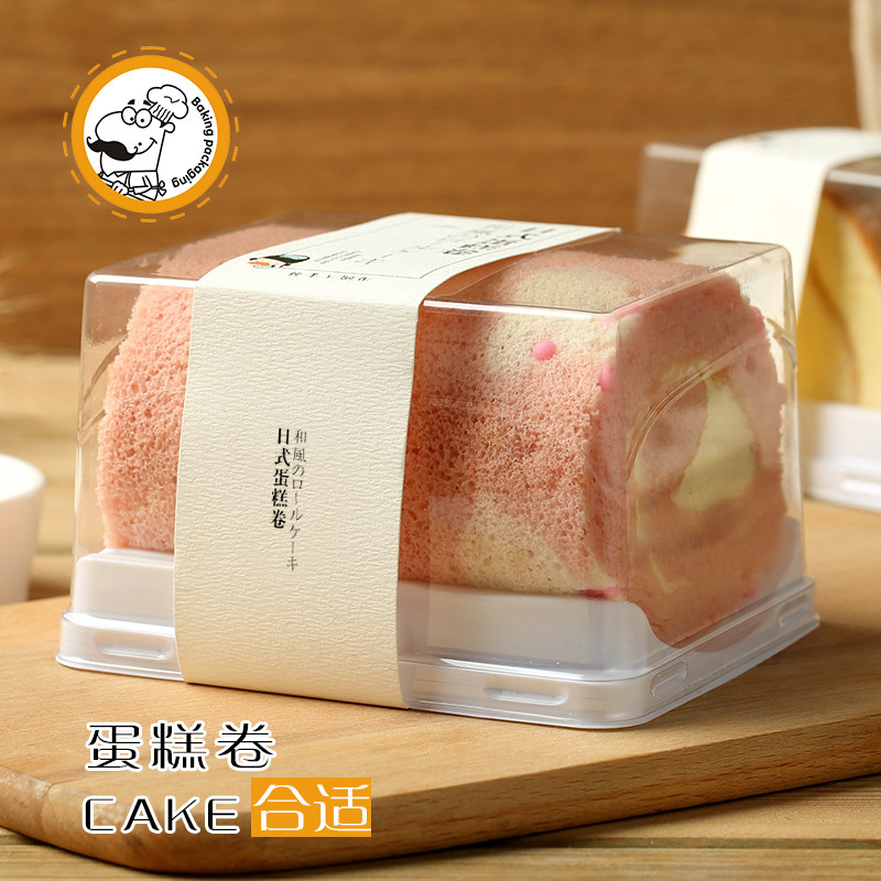 日式蛋糕卷包装盒梦龙瑞士虎皮卷女王透明小西点切块蛋糕盒子打包
