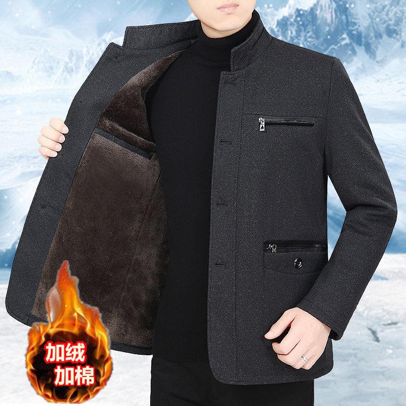 秋冬季中年爸爸装夹克外套男中老年男装夹克衫大码宽松老年人上衣