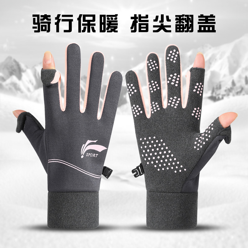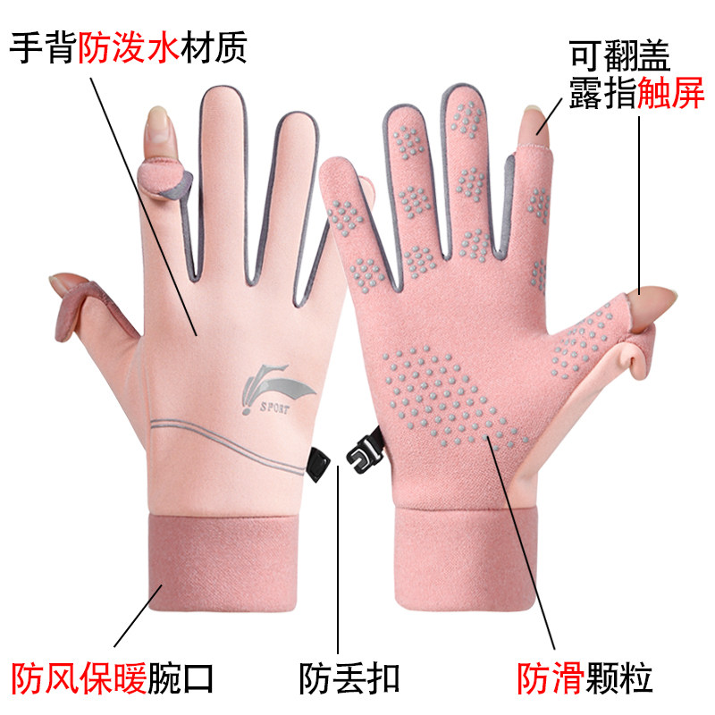 手套女冬季加绒保暖防风防水防滑秋冬户外骑行开车露指触屏手套男