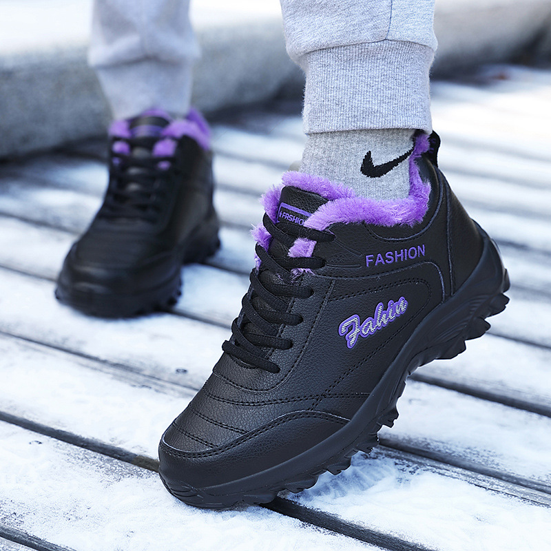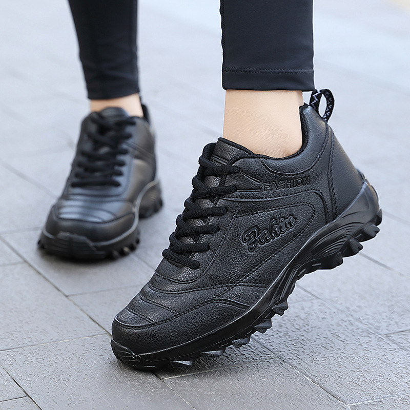 中老年人健步鞋女软底防滑皮面防水舒适轻便妈妈鞋运动保暖厚棉鞋
