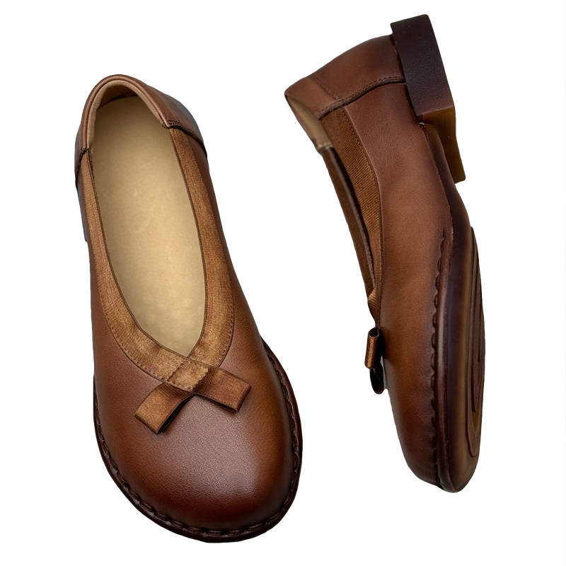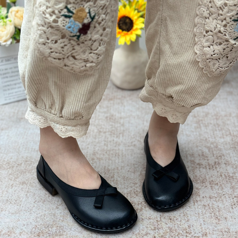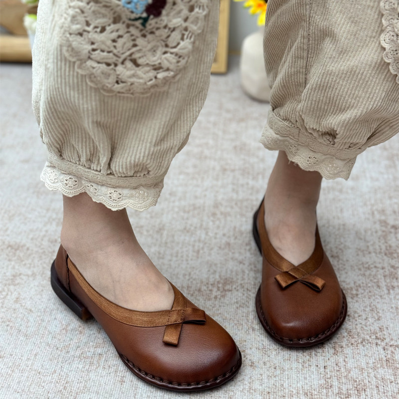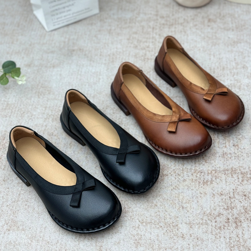复古真皮浅口单鞋2026新款民族风平底休闲鞋一脚蹬妈妈鞋牛皮女鞋