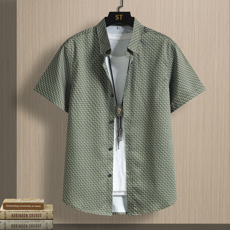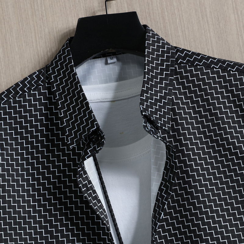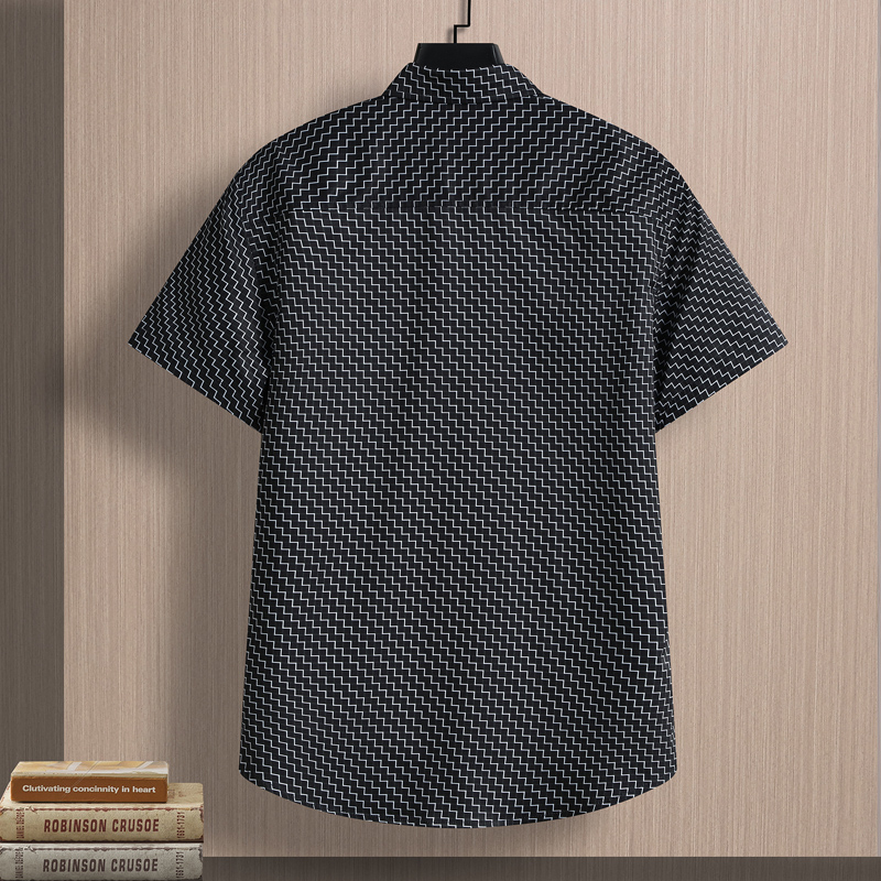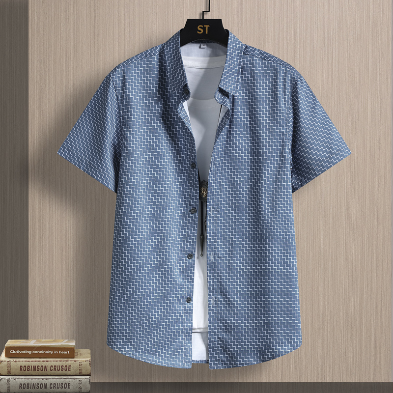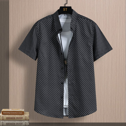 冰丝夏季男士短袖衬衫潮流痞帅印花衬衣凉感透气弹力半袖寸衣薄款