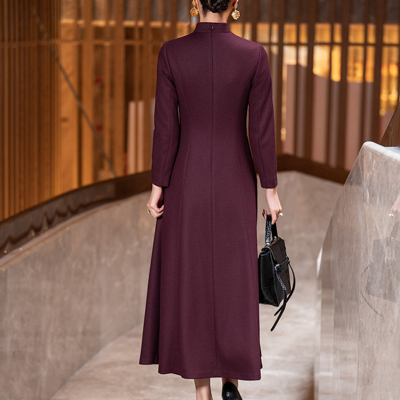 喜婆婆婚宴装毛呢连衣裙女冬季新款新中式喜妈妈装显瘦改良旗袍裙