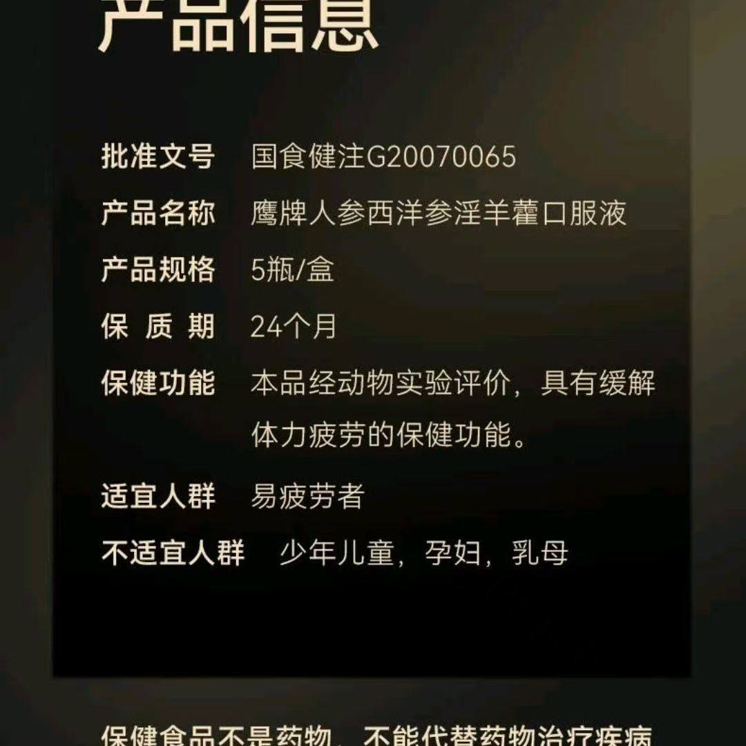 鹰牌人参西洋参淫羊藿口服液成人男士男人男性提神缓解体力疲劳