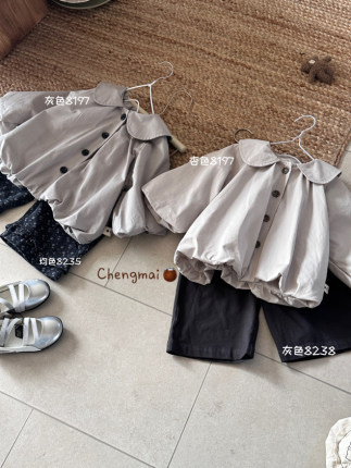 承麦~25秋装新款女童翻领风衣外套8197女宝宝森系风休闲外套百搭