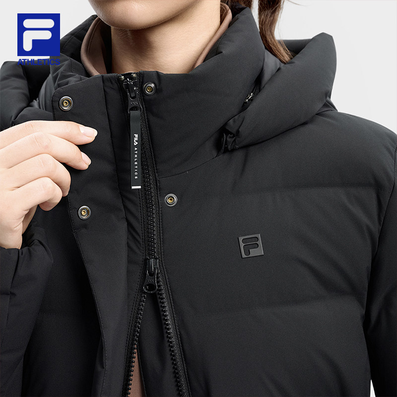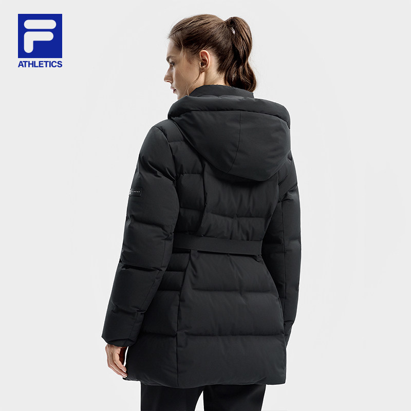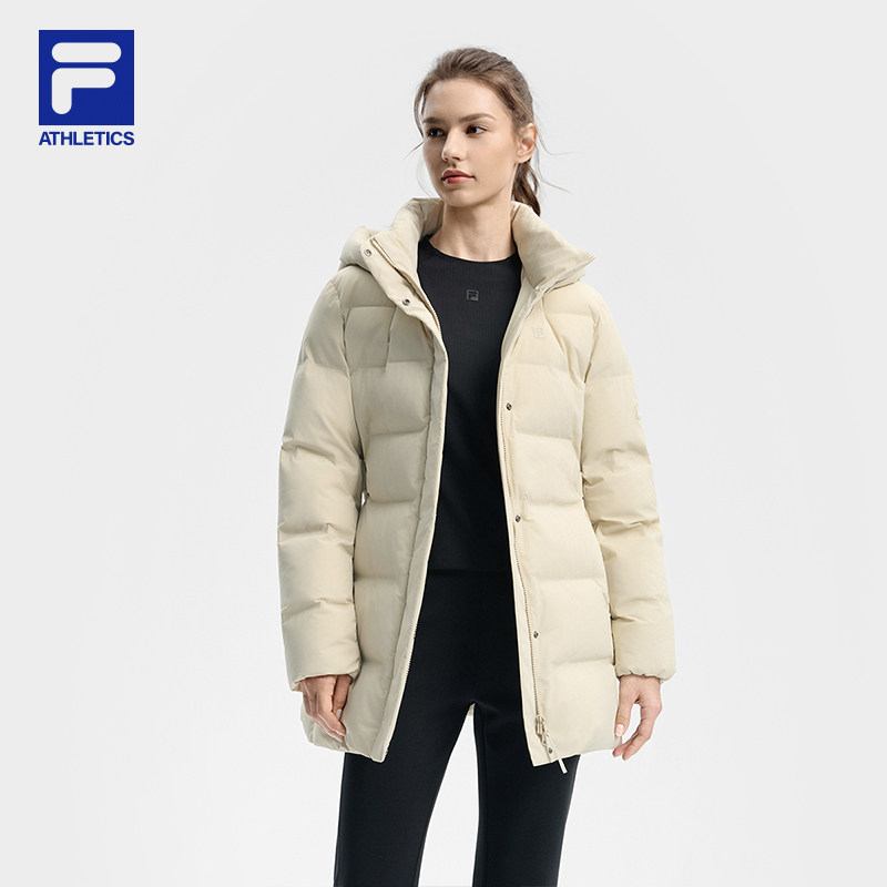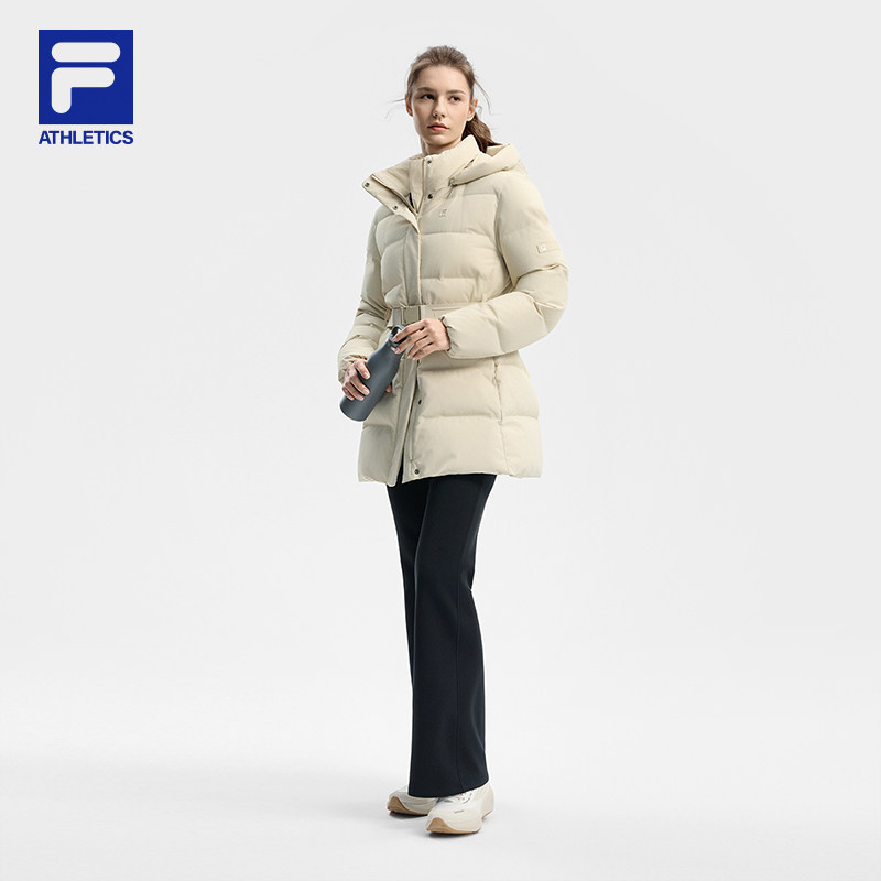 FILA 斐乐官方女士中长款羽绒服2025冬新款健身运动保暖连帽外套