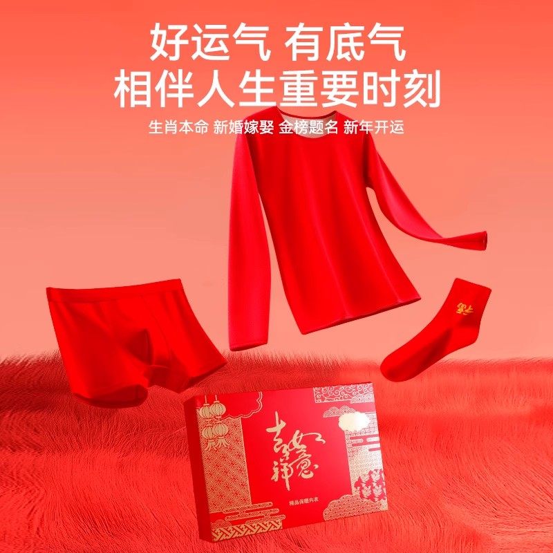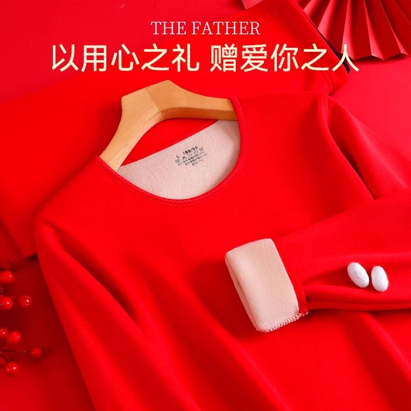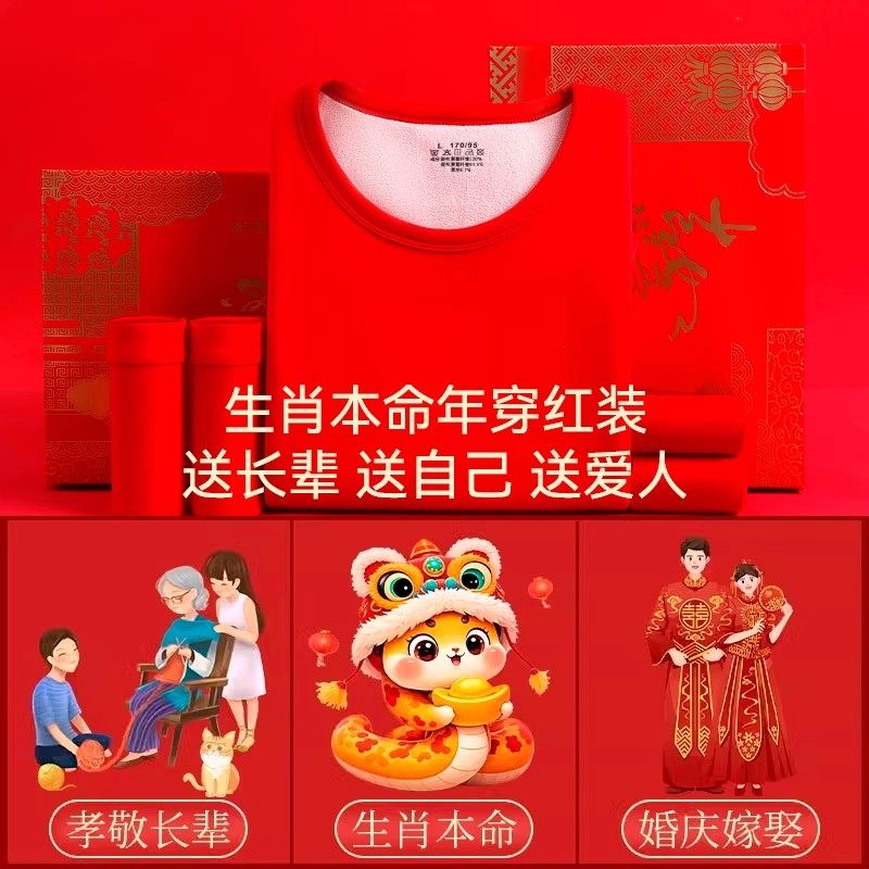 本命年大红色保暖内衣套装