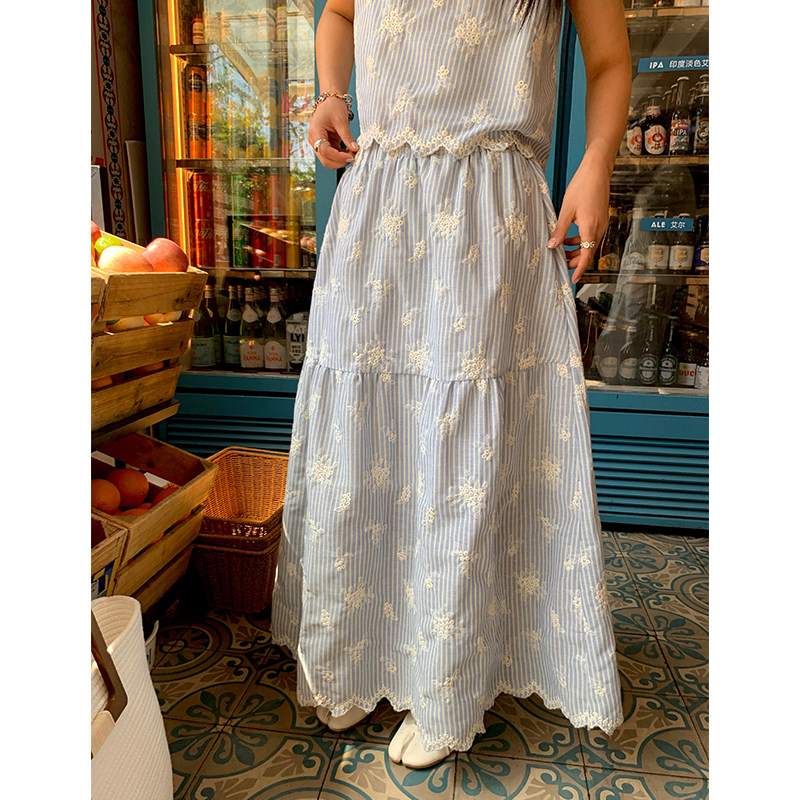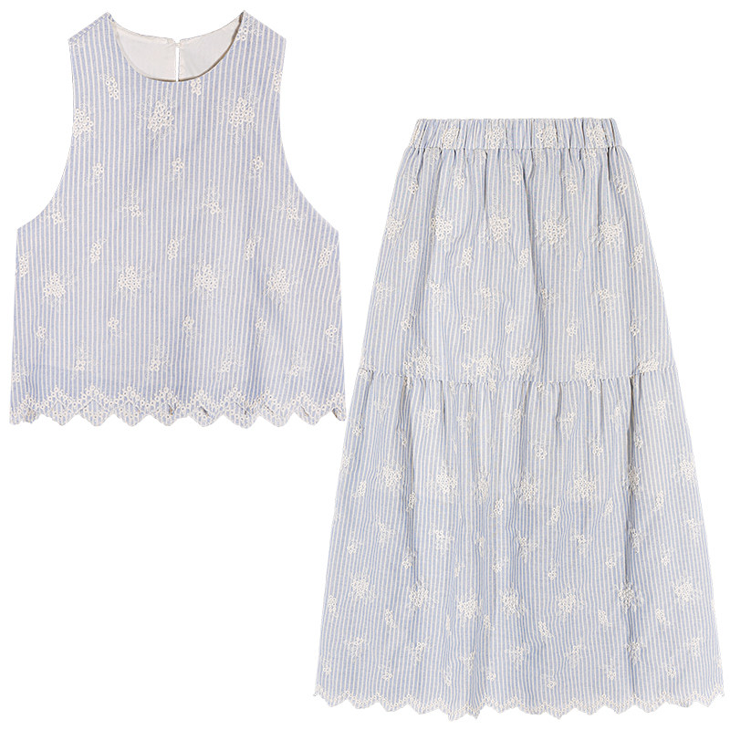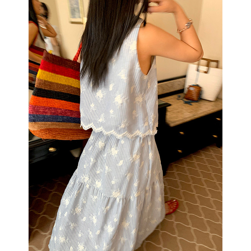 今屿花花 2025超火夏装一整套背心套装裙小个子刺绣上衣+半身裙
