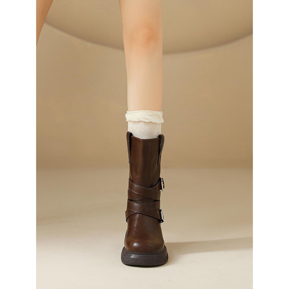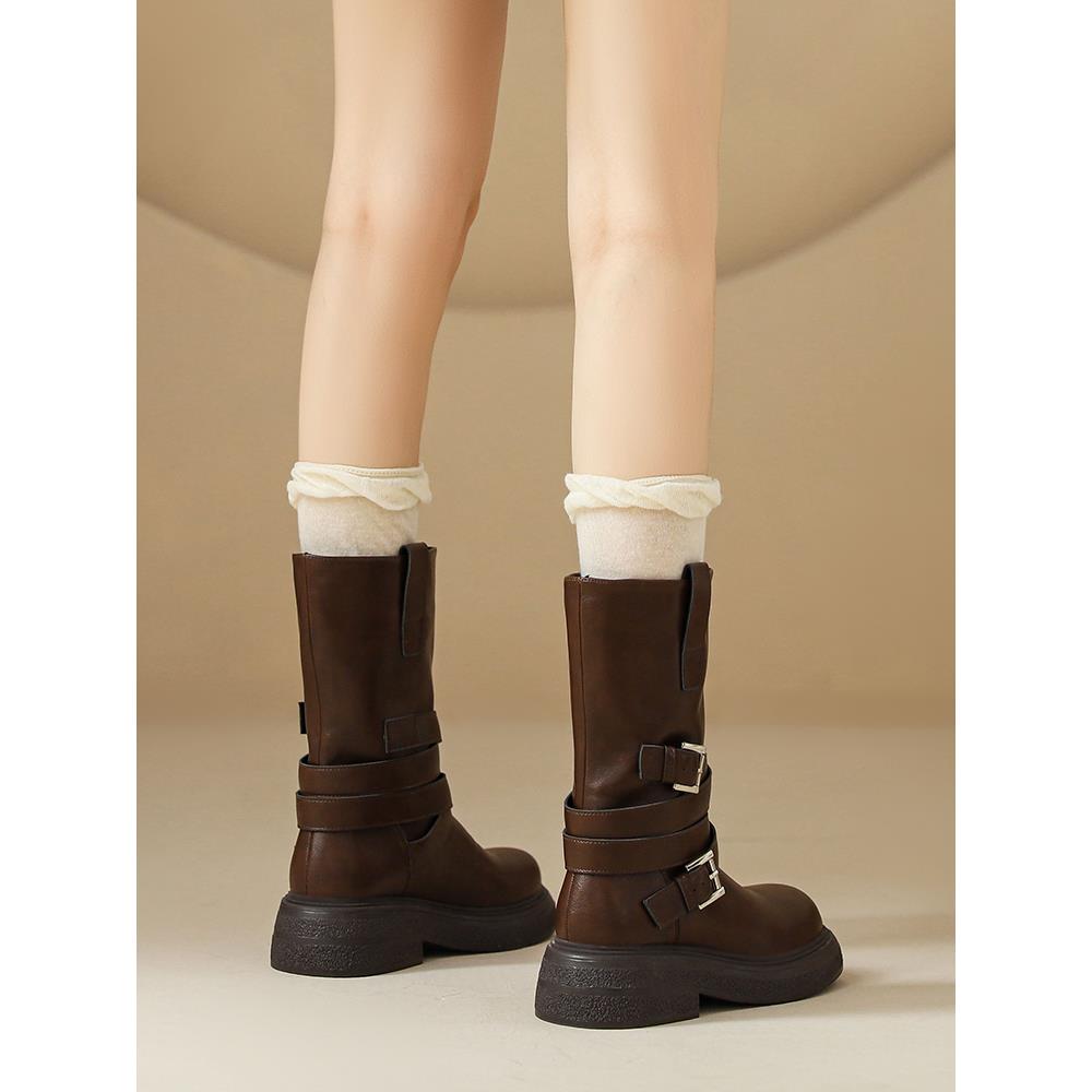 厚底马丁靴女2025冬季新款复古春秋英伦风美拉德中筒帅气机车短靴