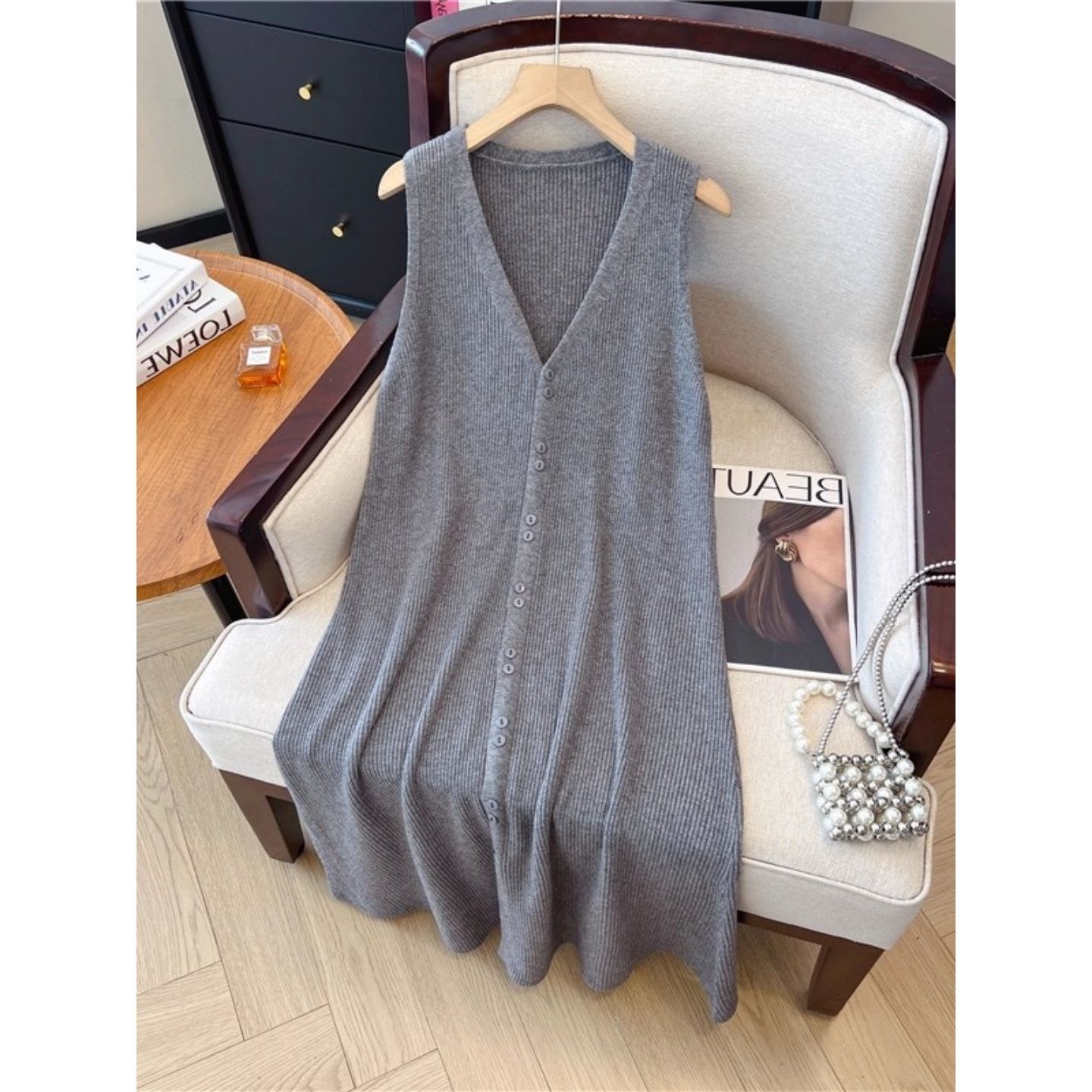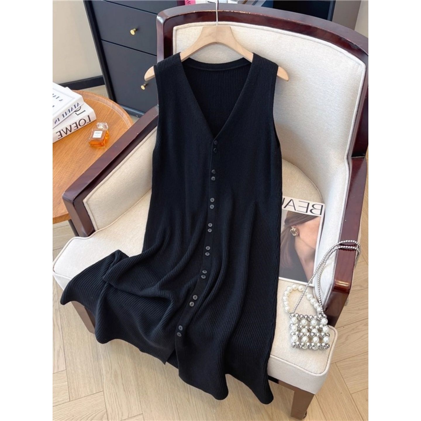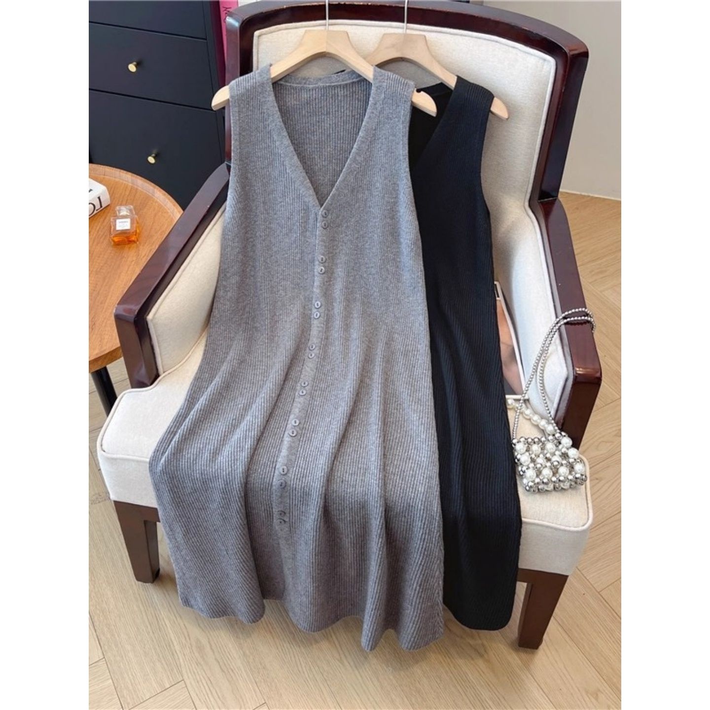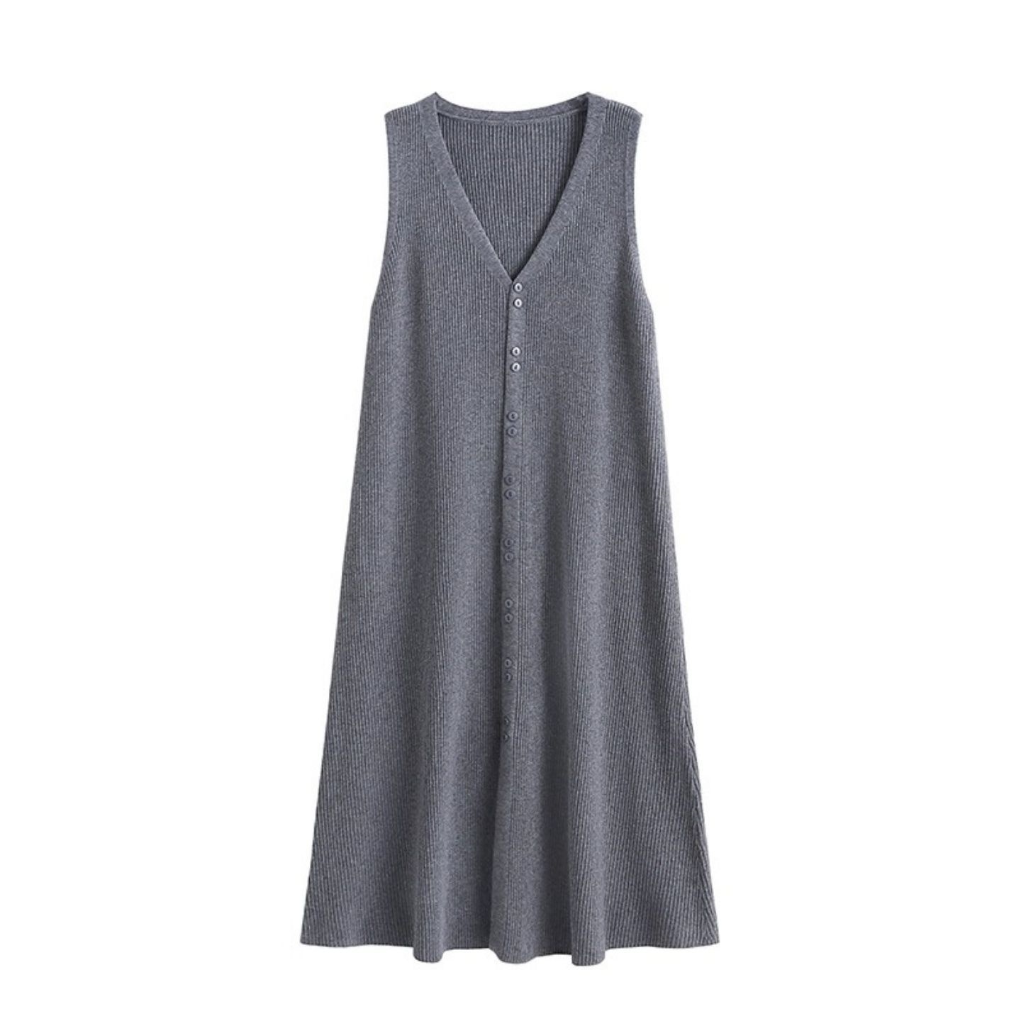洋气宽松长款无袖V领针织背心裙