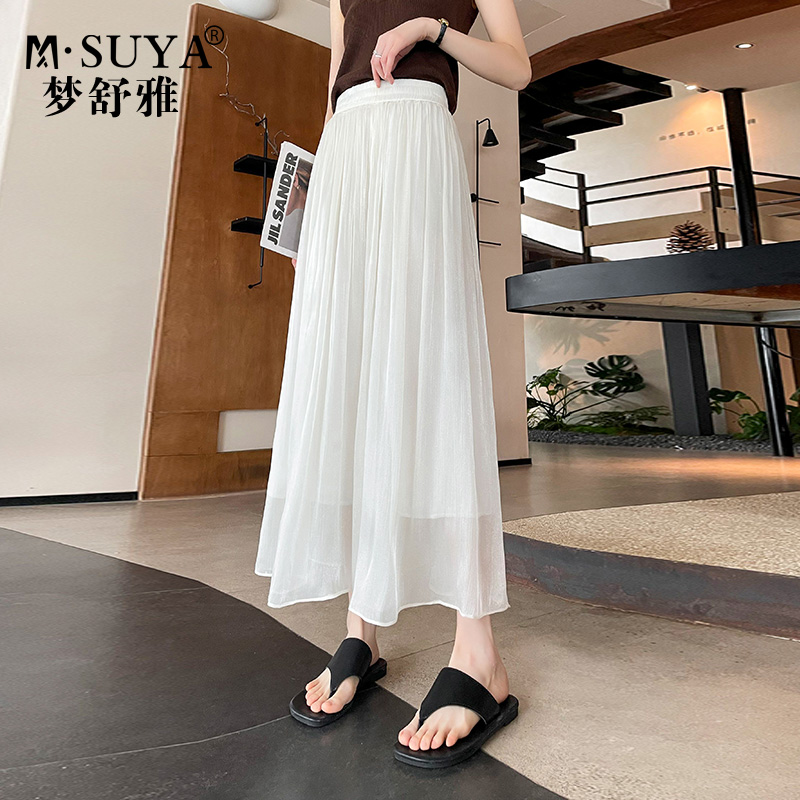 梦舒雅新款法式裙裤女薄款褶皱夏季中长款百褶高级气质流光休闲裤