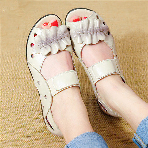 22夏季新款中老年平跟妈妈凉鞋真皮软底舒适镂空中年女鞋平底防滑