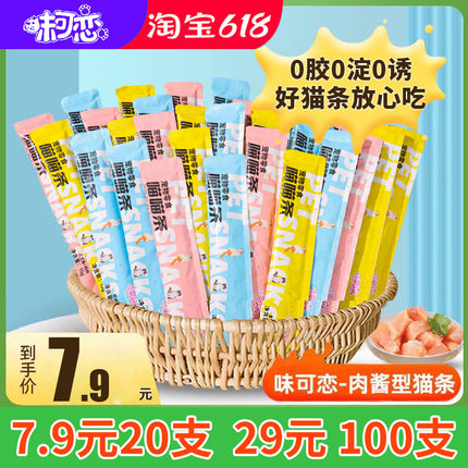 麦芽宠猫条20支100支成幼猫湿粮金枪鱼三文鱼鸡肉猫零食鲣鱼鲍鱼