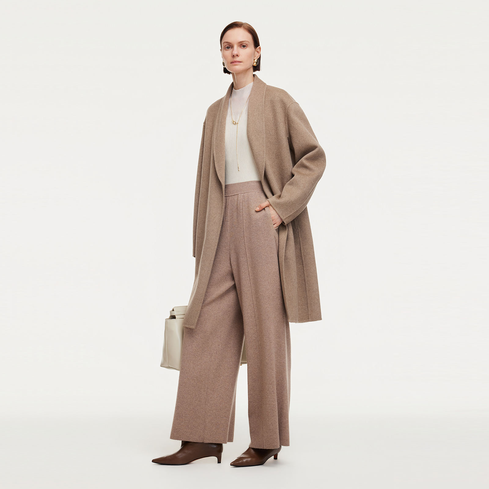 歌莉娅冬季新品全山羊绒青果领双面呢大衣1ECL6N360
