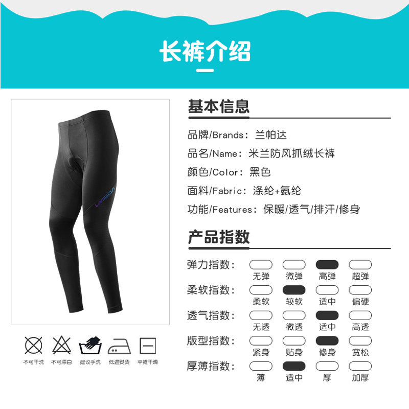 兰帕达秋冬抓绒长袖自行车骑行服套装男山地公路车春秋骑行裤装备