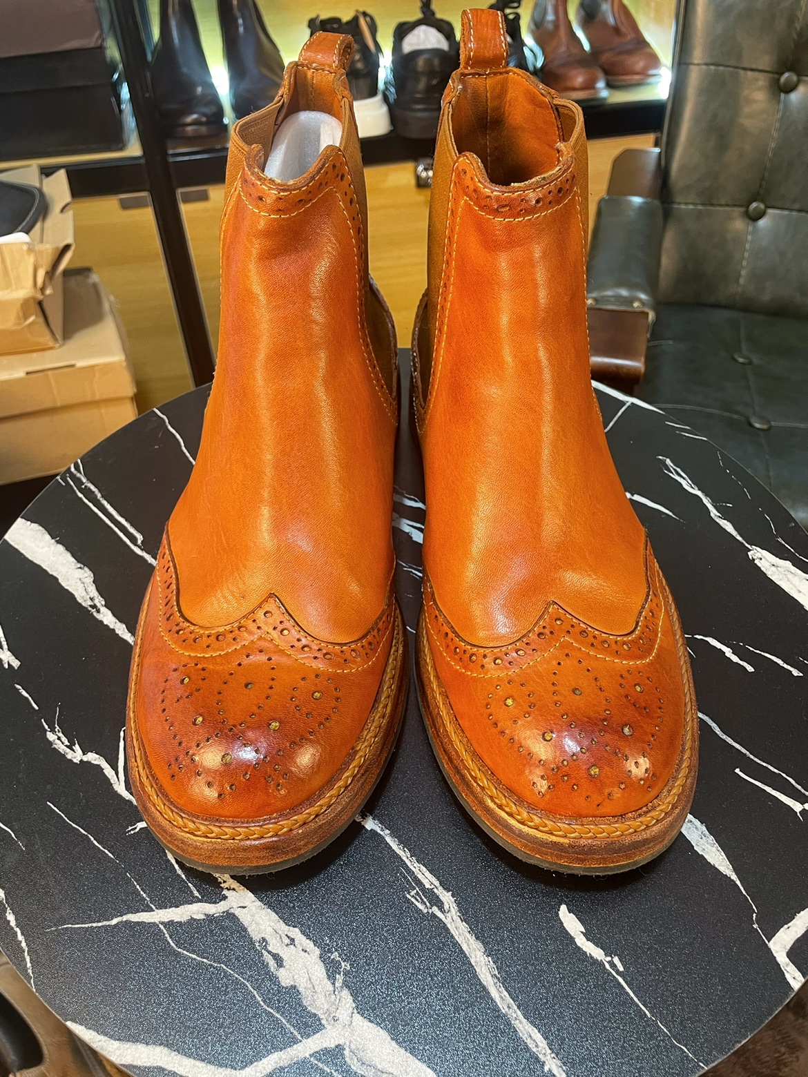 重水洗马皮布洛克切尔西春秋款男士真皮复古潮靴雕花英伦圆头短靴
