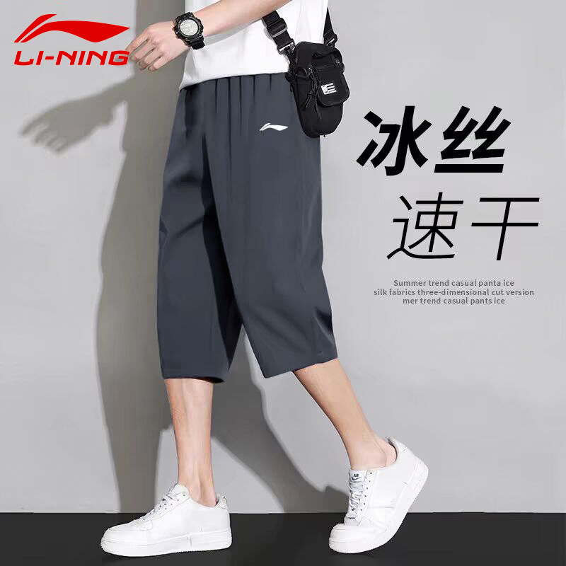 李宁七分裤男运动中裤夏季速干薄款冰丝梭织透气跑步健身冰丝短裤
