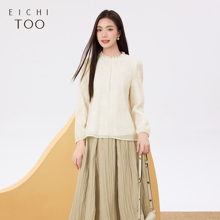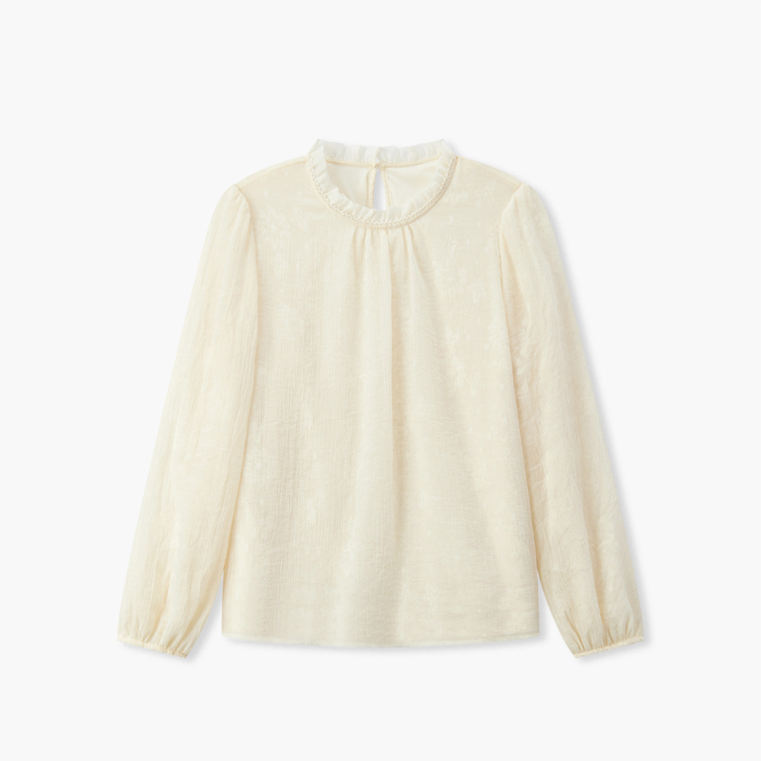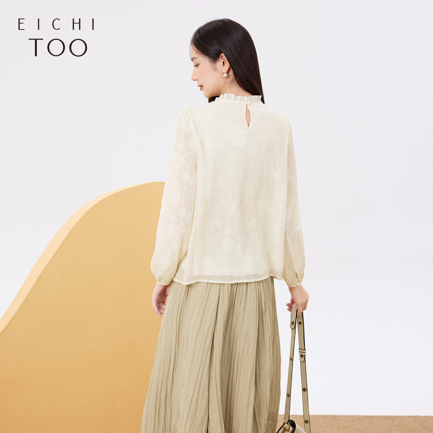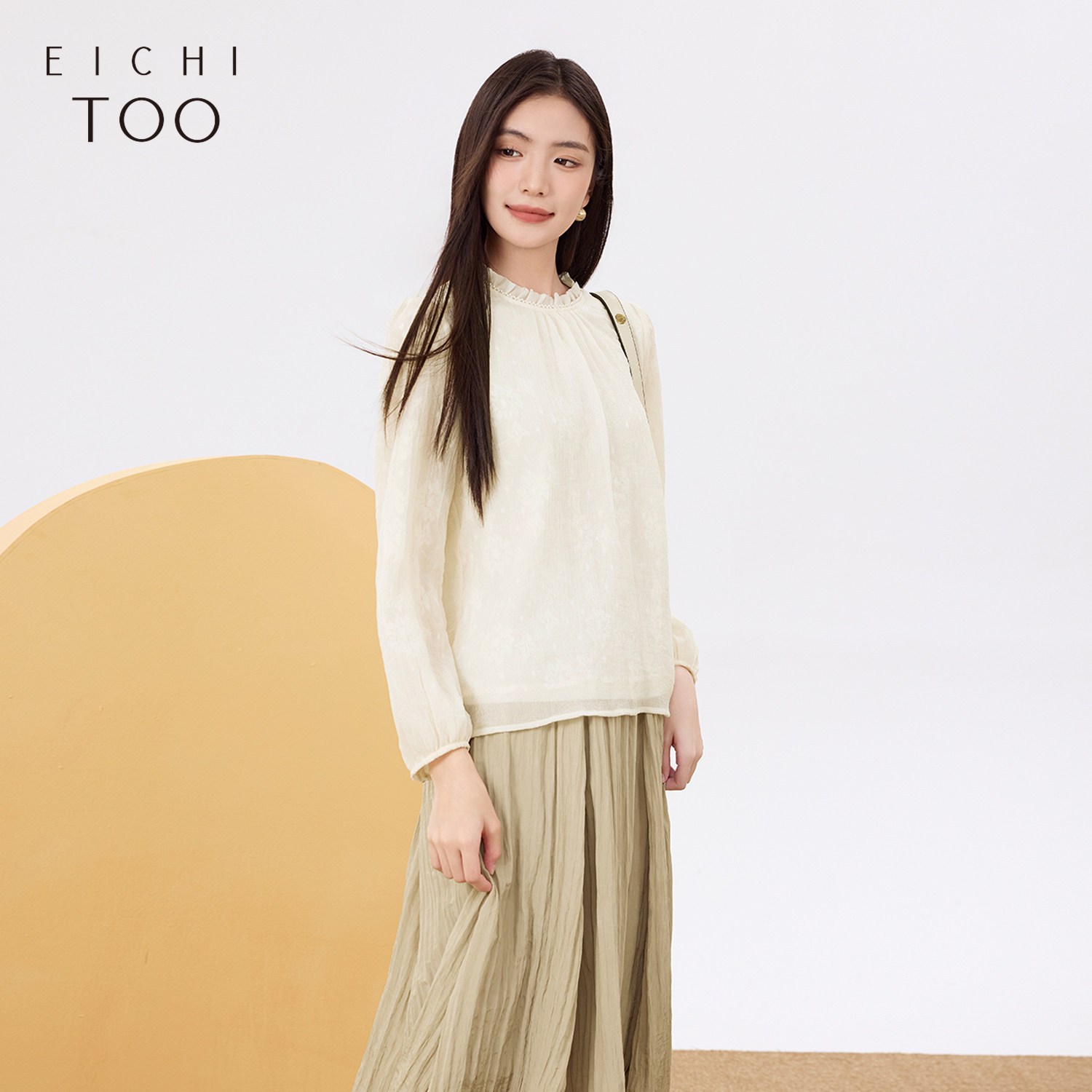 爱居兔长袖雪纺衫女春秋新款木耳边气质显瘦衬衫上衣